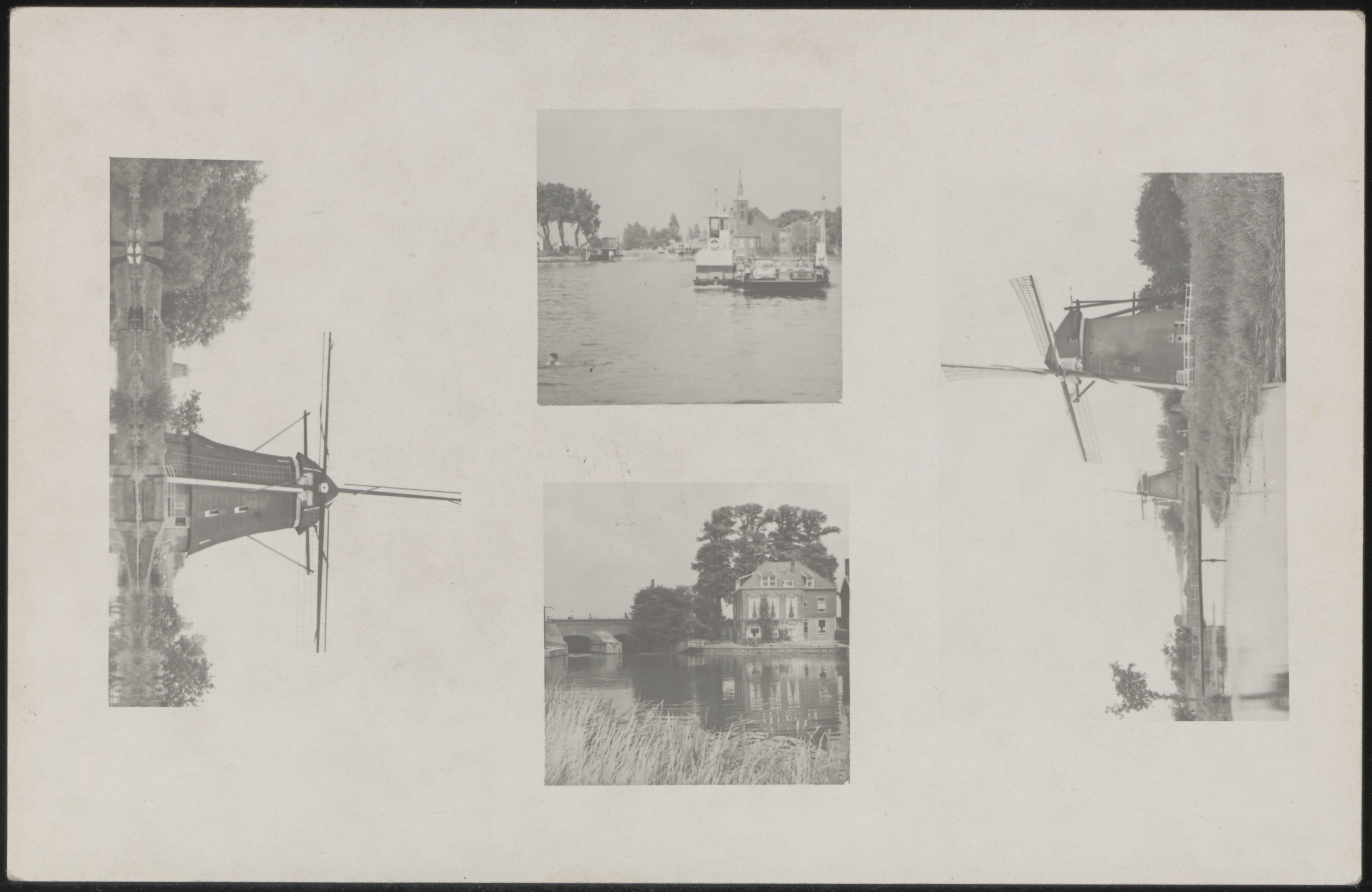 - Kinderdijk. Links. Molen Overwaard no. 1 aan Molenkade Overwaard. Middenboven: Veer Kinderdijk / Krimpen aan de Lek (rechts). Middenonder: Waardhuis van de Overwaard aan de Molenstraat. Rechts (gespiegeld): Molen Nederwaard no. 5 aan de Molenkade Nederwaard, erachter de vijf molens aan de Molenkade Overwaard.