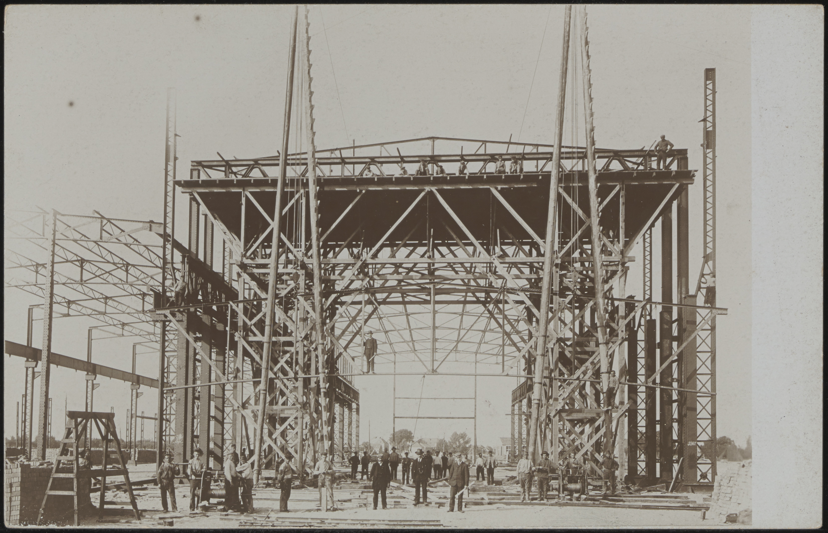 Bouw van werkplaatsen bij Smit Kinderdijk met op de achtergrond de Molenstraat in …