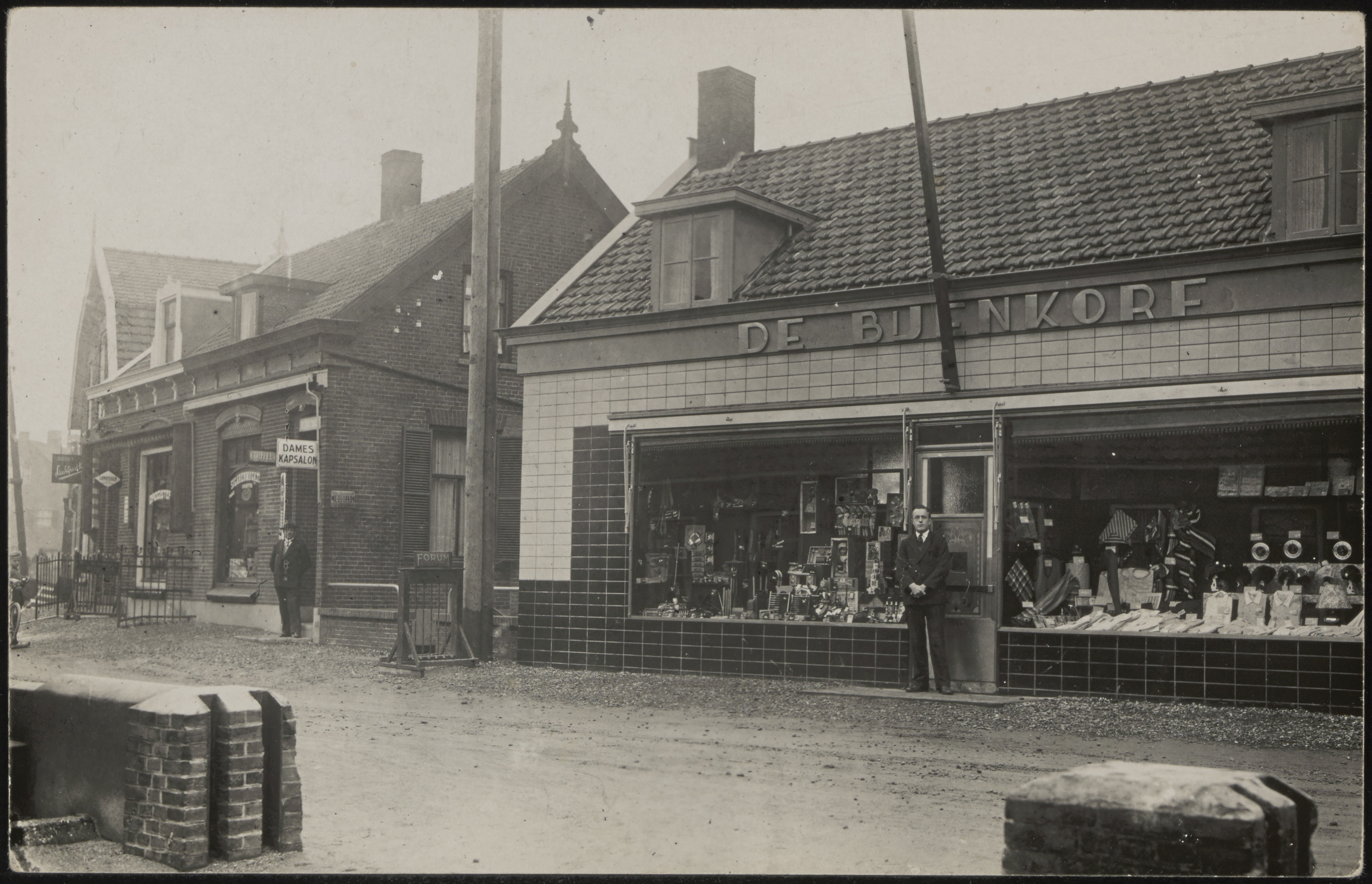 - Bazar De Bijenkorf en een dameskapsalon aan de Molenstraat in Kinderdijk.