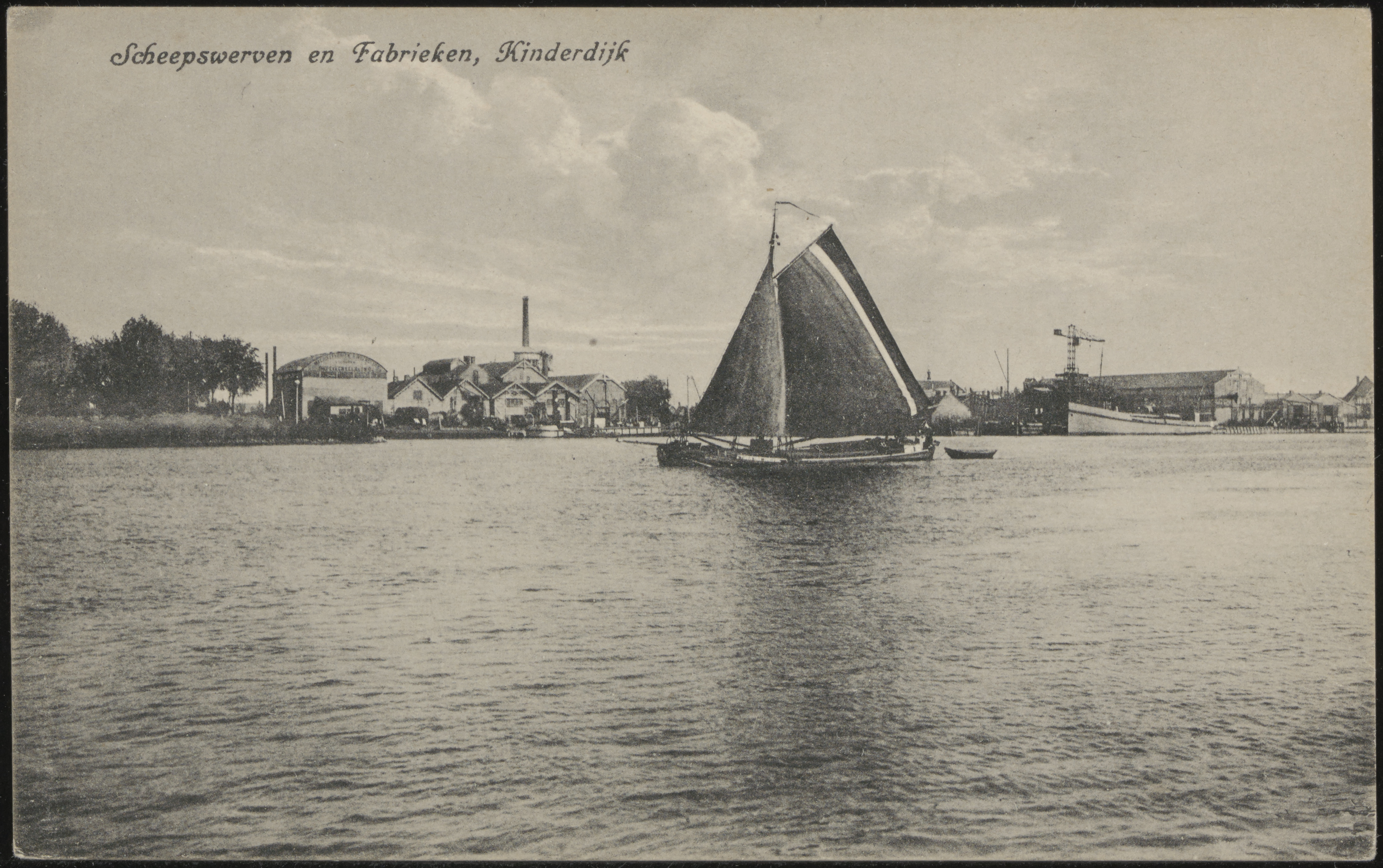 - Smit machinefabriek en scheepswerf in Kinderdijk gezien vanaf de Lek.