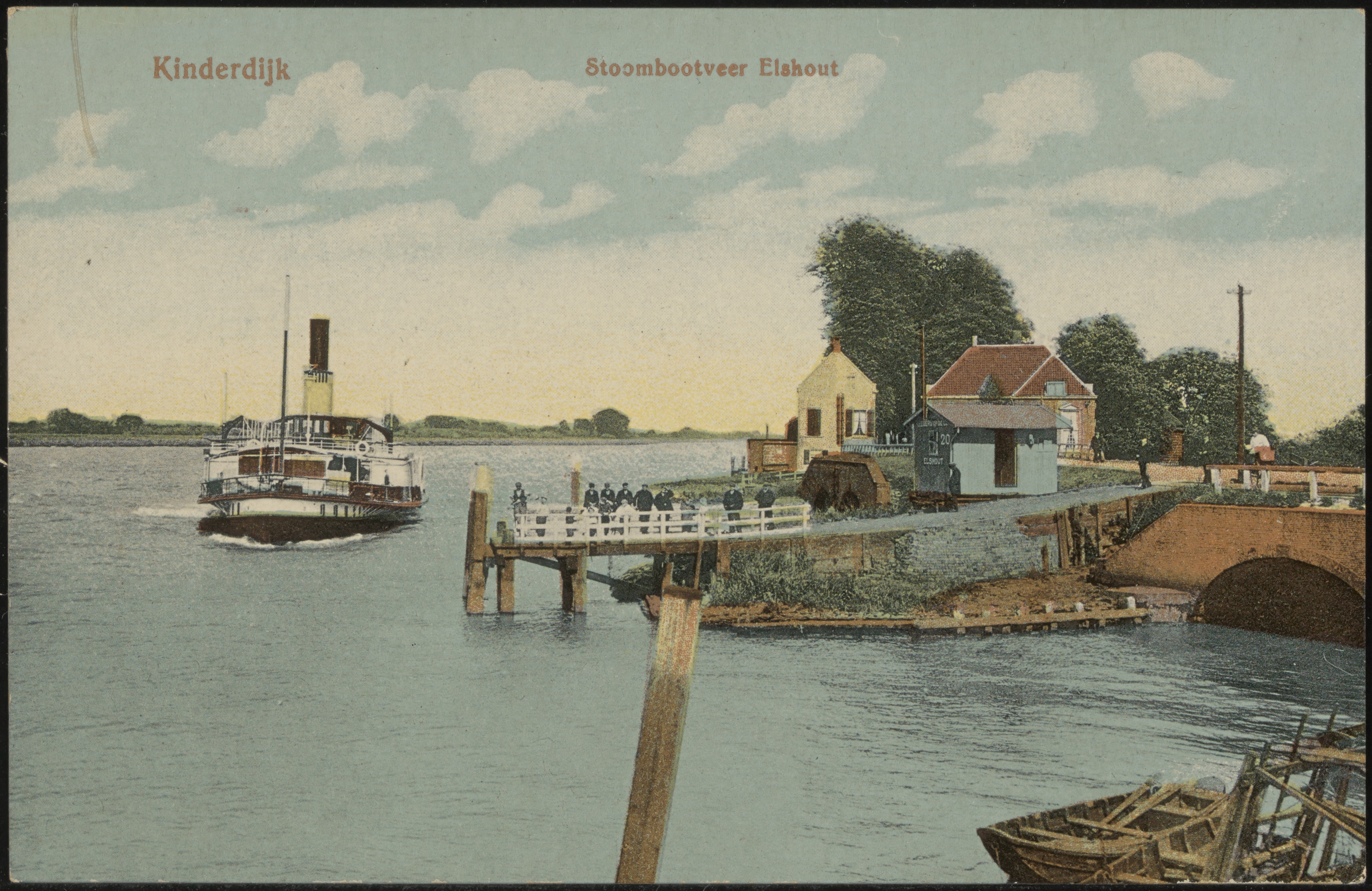 Aanlegsteiger Lekboten met rechts de Elshoutse sluizen met het Waardhuis van de Overwaard aan de Molenstraat in Kinderdijk.