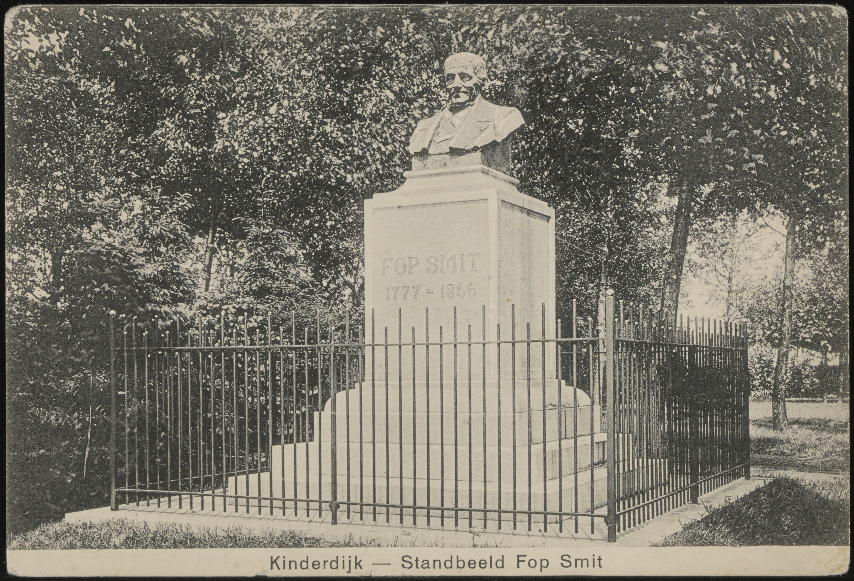 Borstbeeld van Fop Smit 1777-1866 op het plantsoentje op de Punt in Kinderdijk. Nu staat er alleen de sokkel nog, het beeld verhuisde naar Den Haag en staat nu bij Martijn Smit in de Willemstraat.