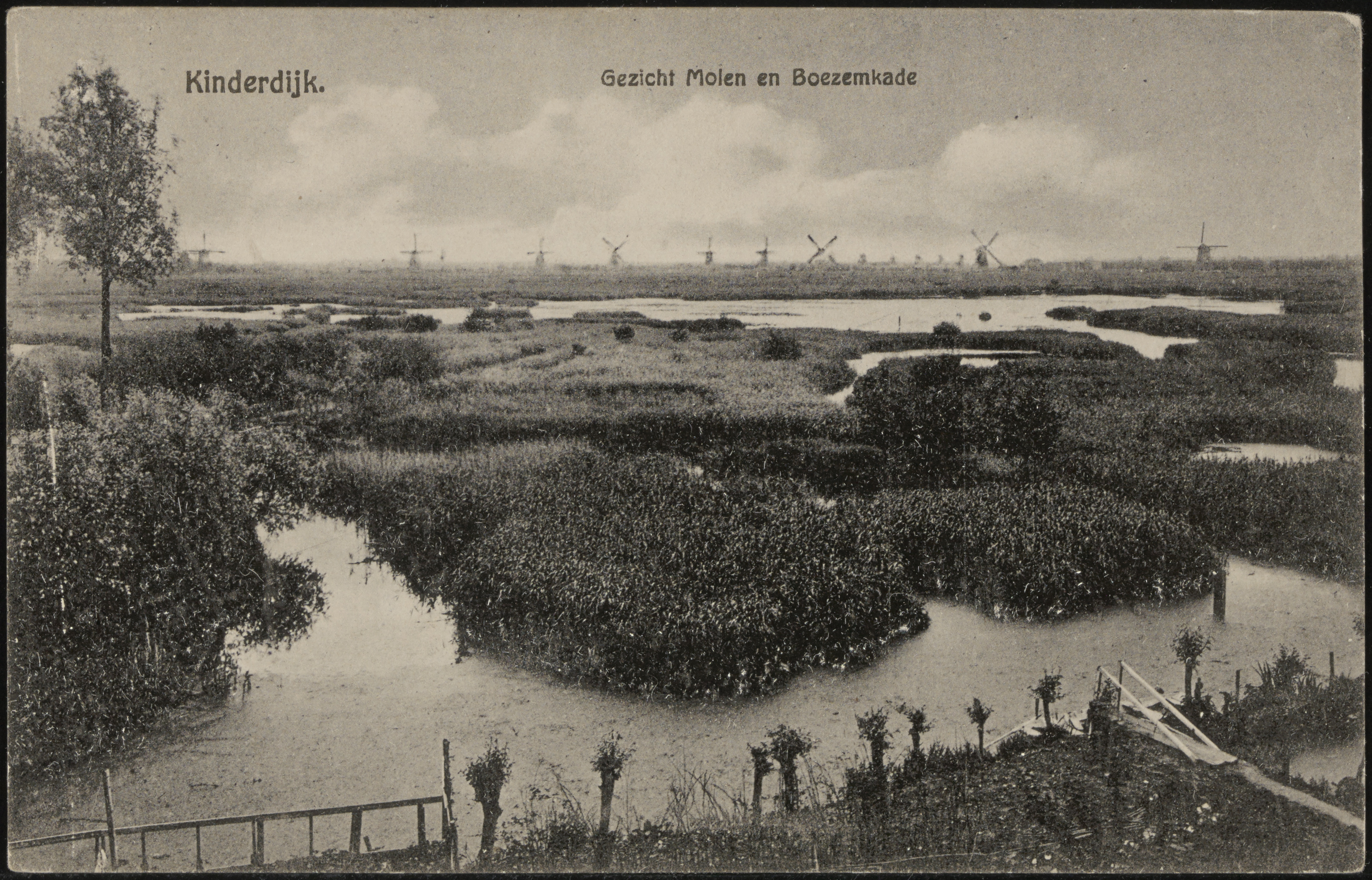 Vanaf de West Kinderdijk zicht op de molens van Kinderdijk