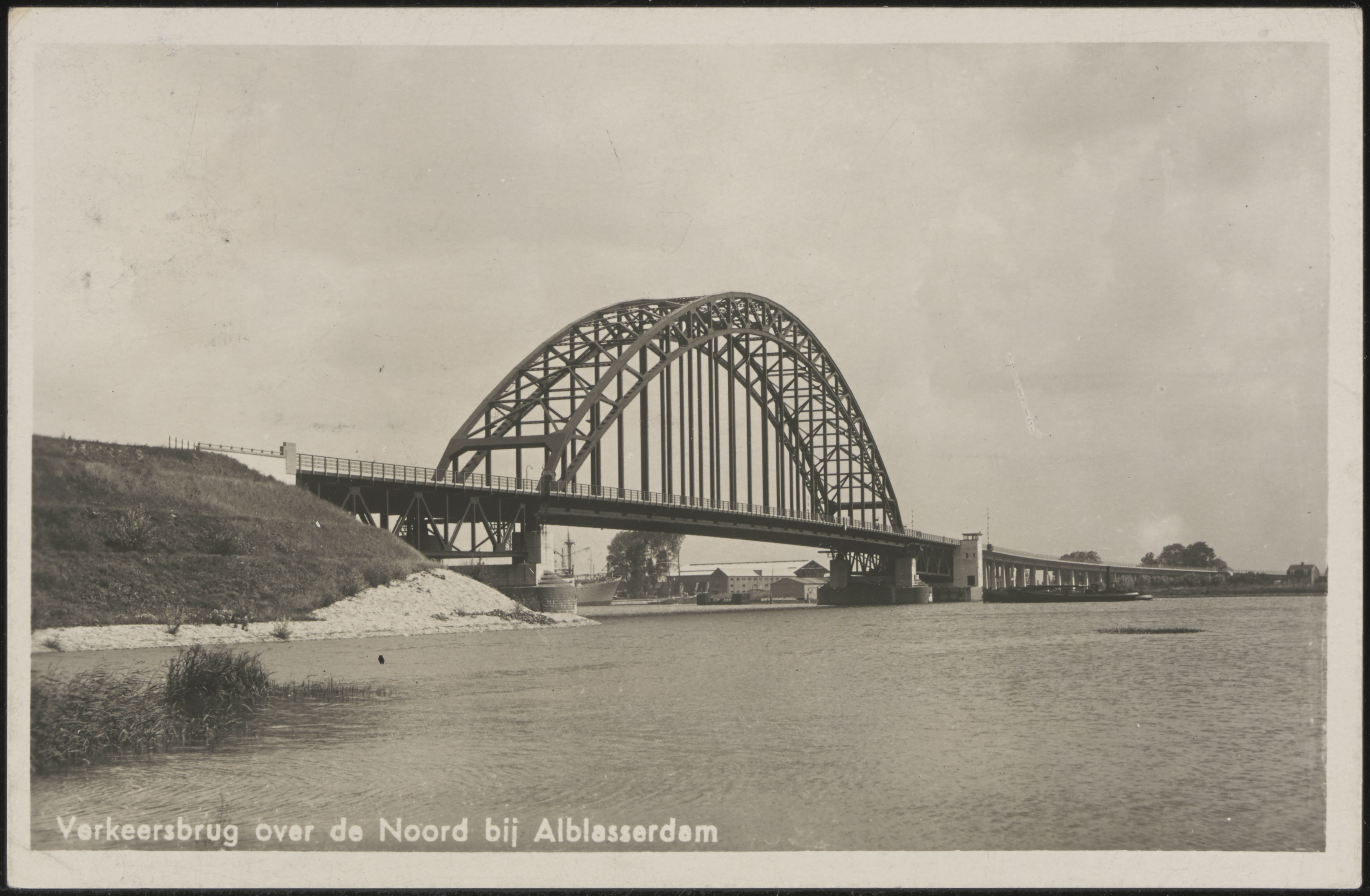 - Brug over de Noord gezien vanaf Hendrik-Ido-Ambacht. Onder de brug scheepswerf De Noord in Alblasserdam.