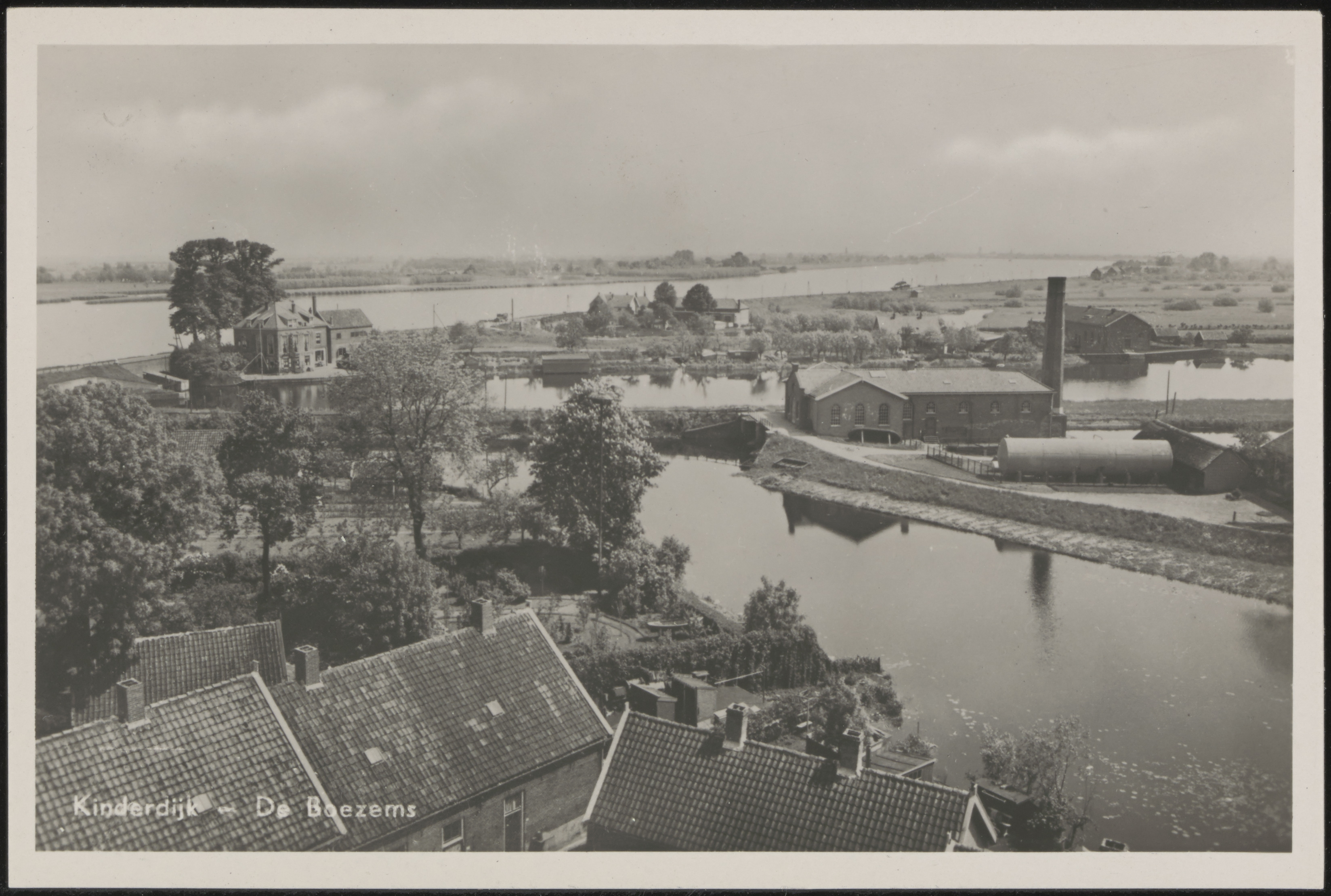 - Links de Elshoutsluis met het Waardhuis van de Overwaard aan de Molenstraat in Kinderdijk. Rechts het stoomgemaal Van Haaften aan de Molenkade Nederwaard.