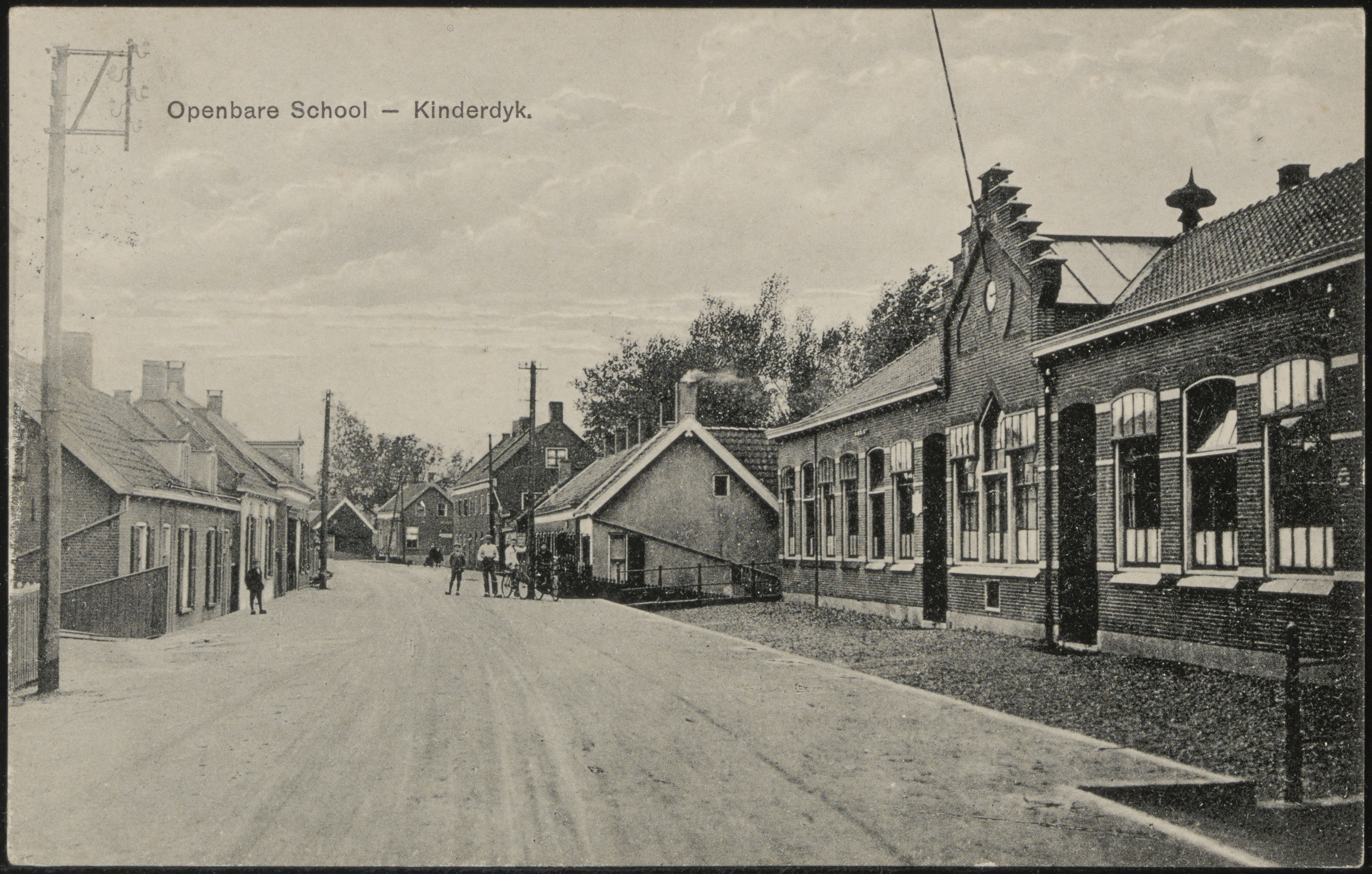 - De Molenstraat in Kinderdijk. Rechts de openbare "school met de klok".