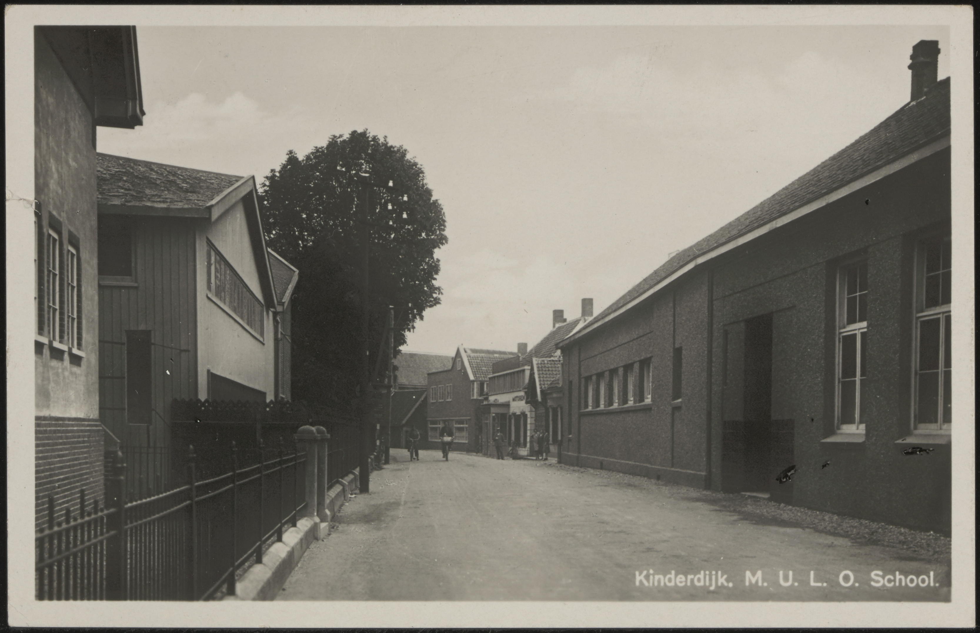 - De Molenstraat in Kinderdijk. Rechts de muloschool, in de volksmond de Biggeltjesschool genaamd.