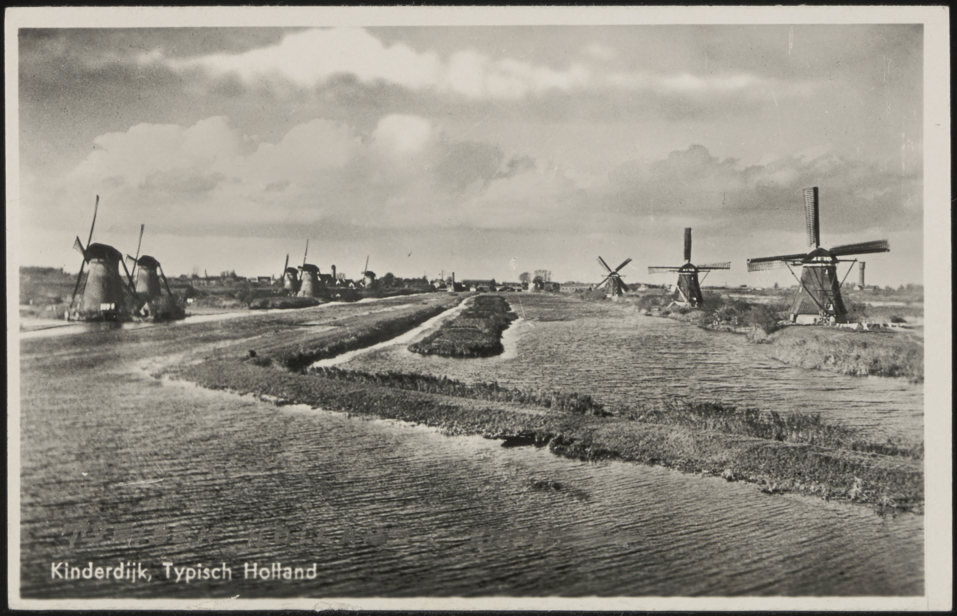 - Molens in Kinderdijk. Links de Molenkade Nederwaard, rechts de Molenkade Overwaard.