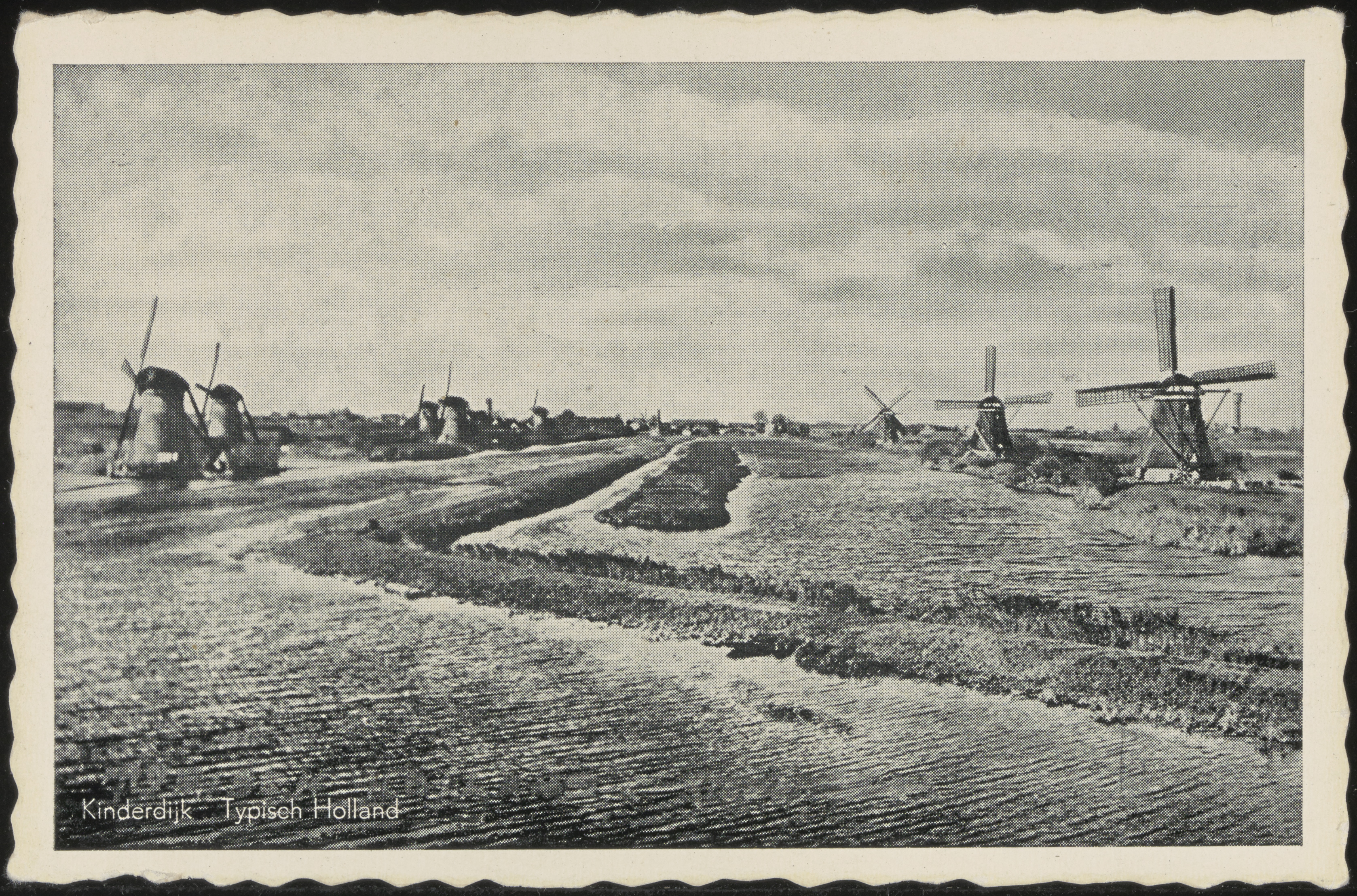 - Molens in Kinderdijk, links aan de Molenkade Nederwaard en rechts aan de Molenkade Overwaard.