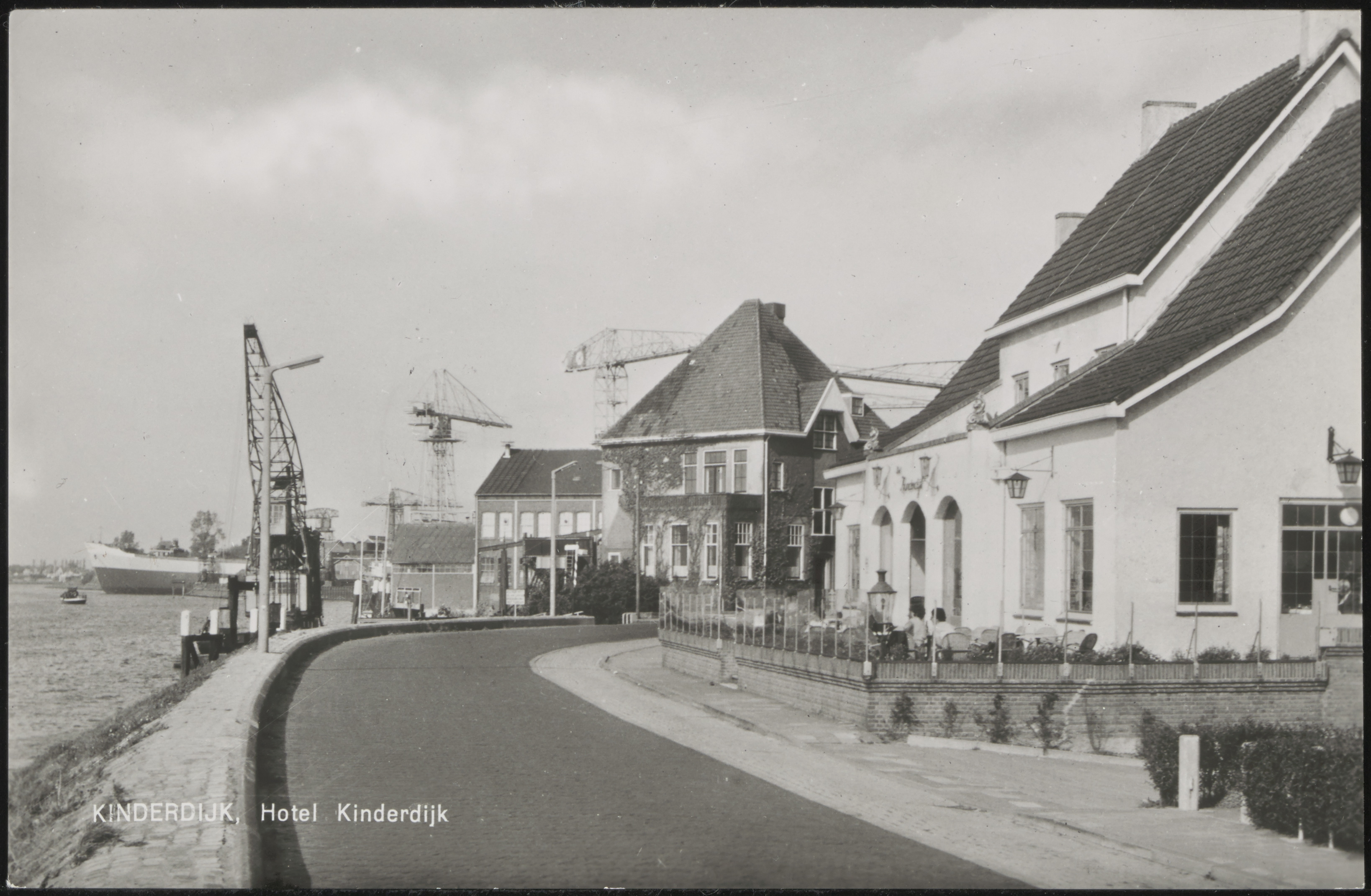 - Hotel Kinderdijk aan de West Kinderdijk met de scheepswerf er achter van L.Smit,