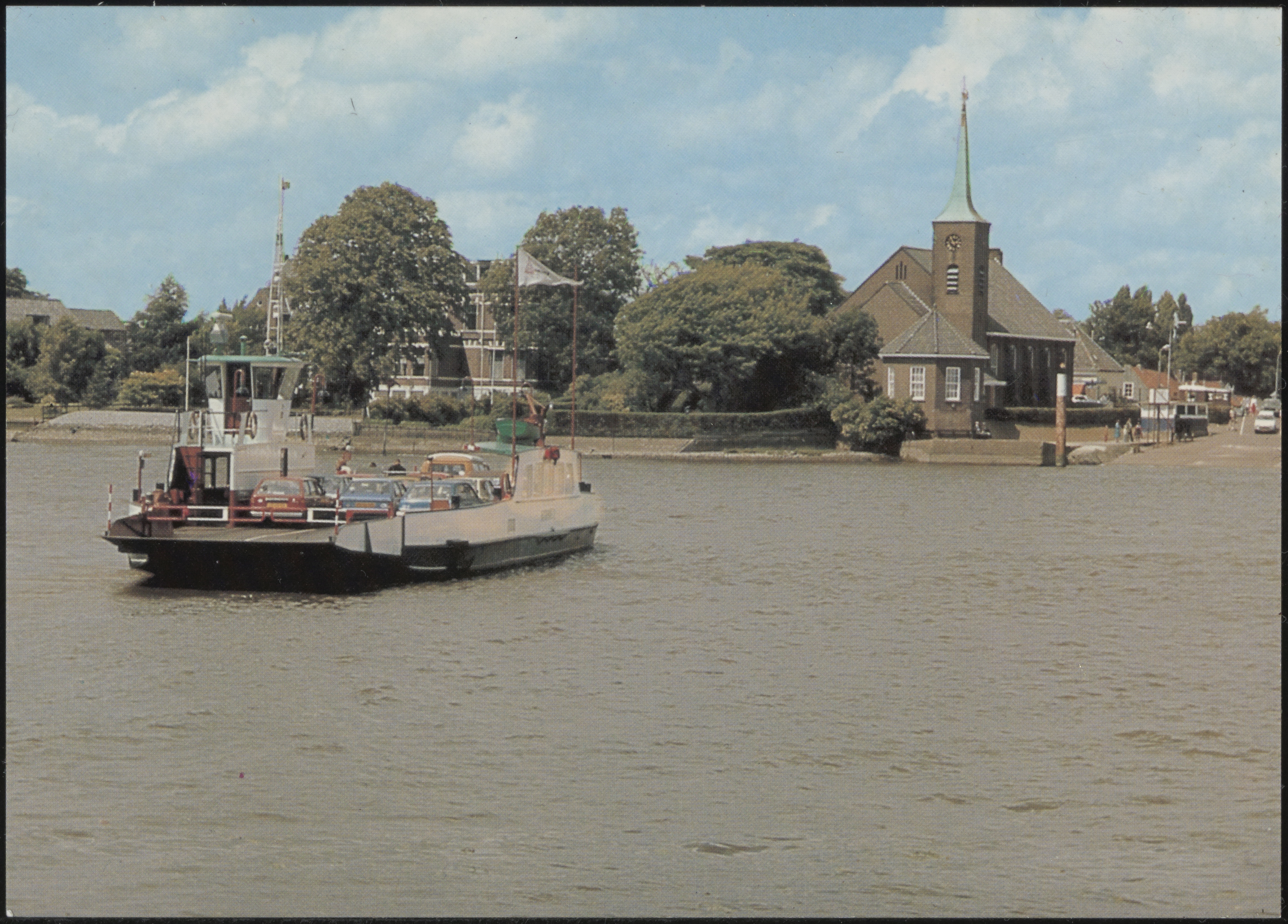 Veerdienst op de Lek vanaf Kinderdijk naar de veersteiger bij de Hervormde Kerk aan …