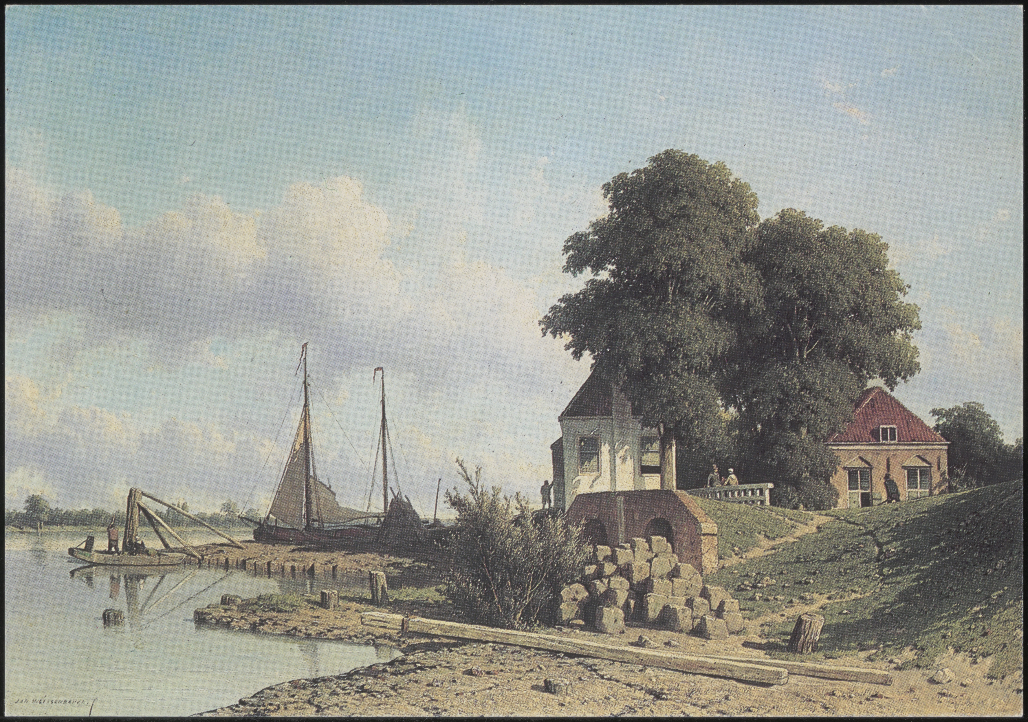 Schilderij door Jan Weissenbruch van het Waardhuis van de Overwaard en de Elshoutsluis …