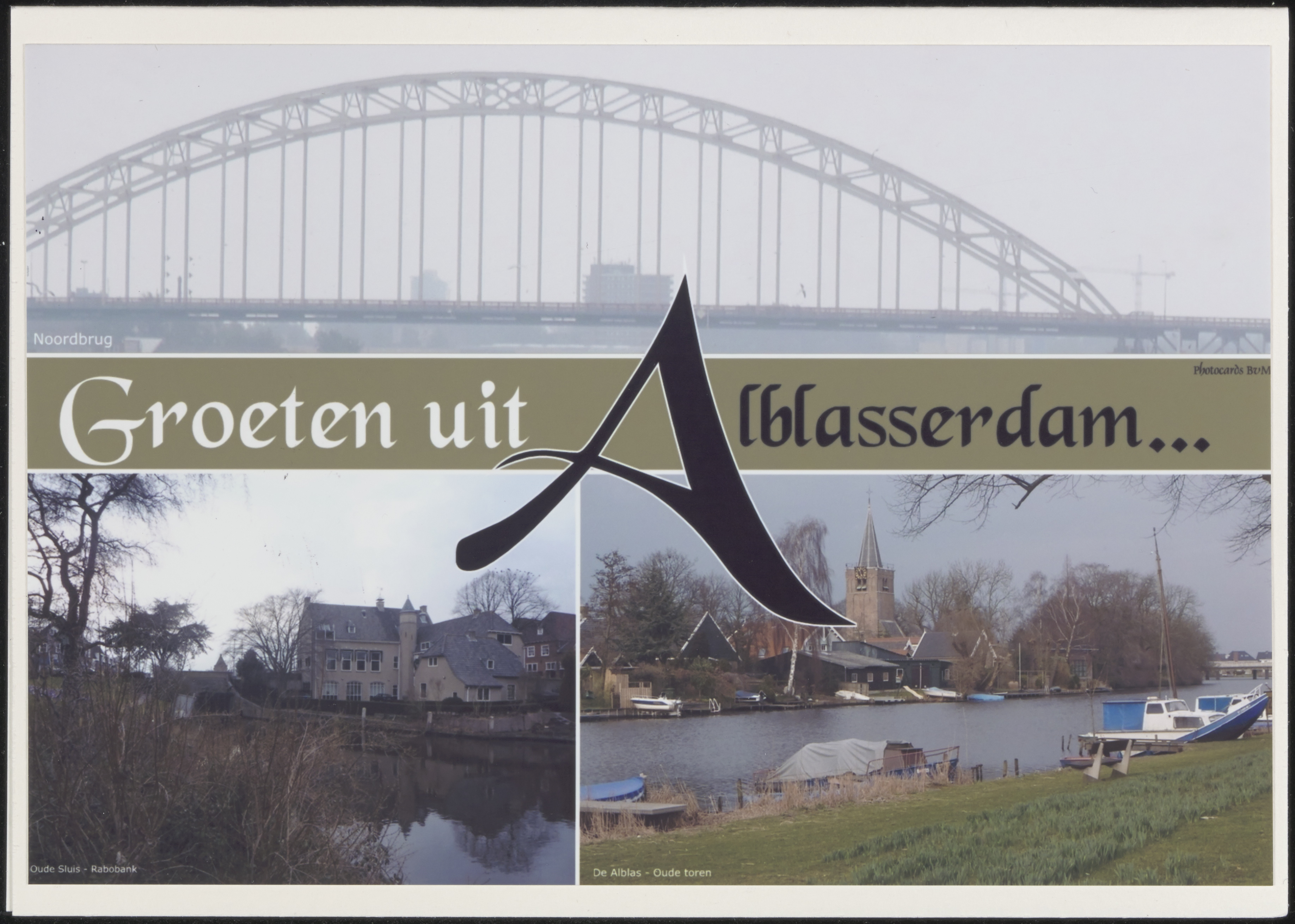 - Boven: Brug over de Noord. Linksonder: Waardhuis van de Nederwaard op de Dam in Alblasserdam. Rechtsonder: De Alblas vanaf de Polderstraat richting Oude Toren in Alblasserdam.