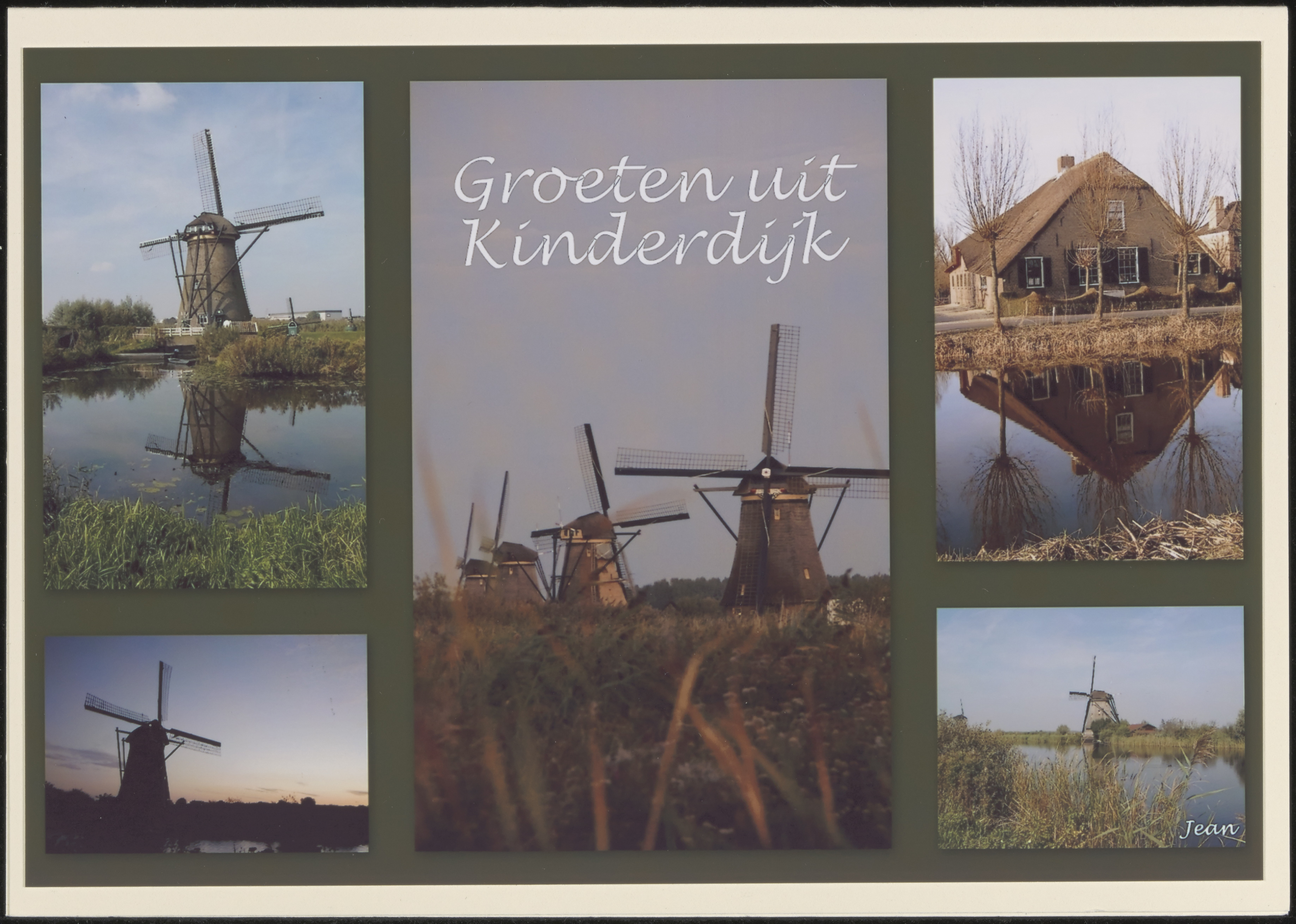 - Molens in Kinderdijk. Rechtsboven boerderij aan de Gijbelandsedijk 4 langs de Graafstroom in Brandwijk.