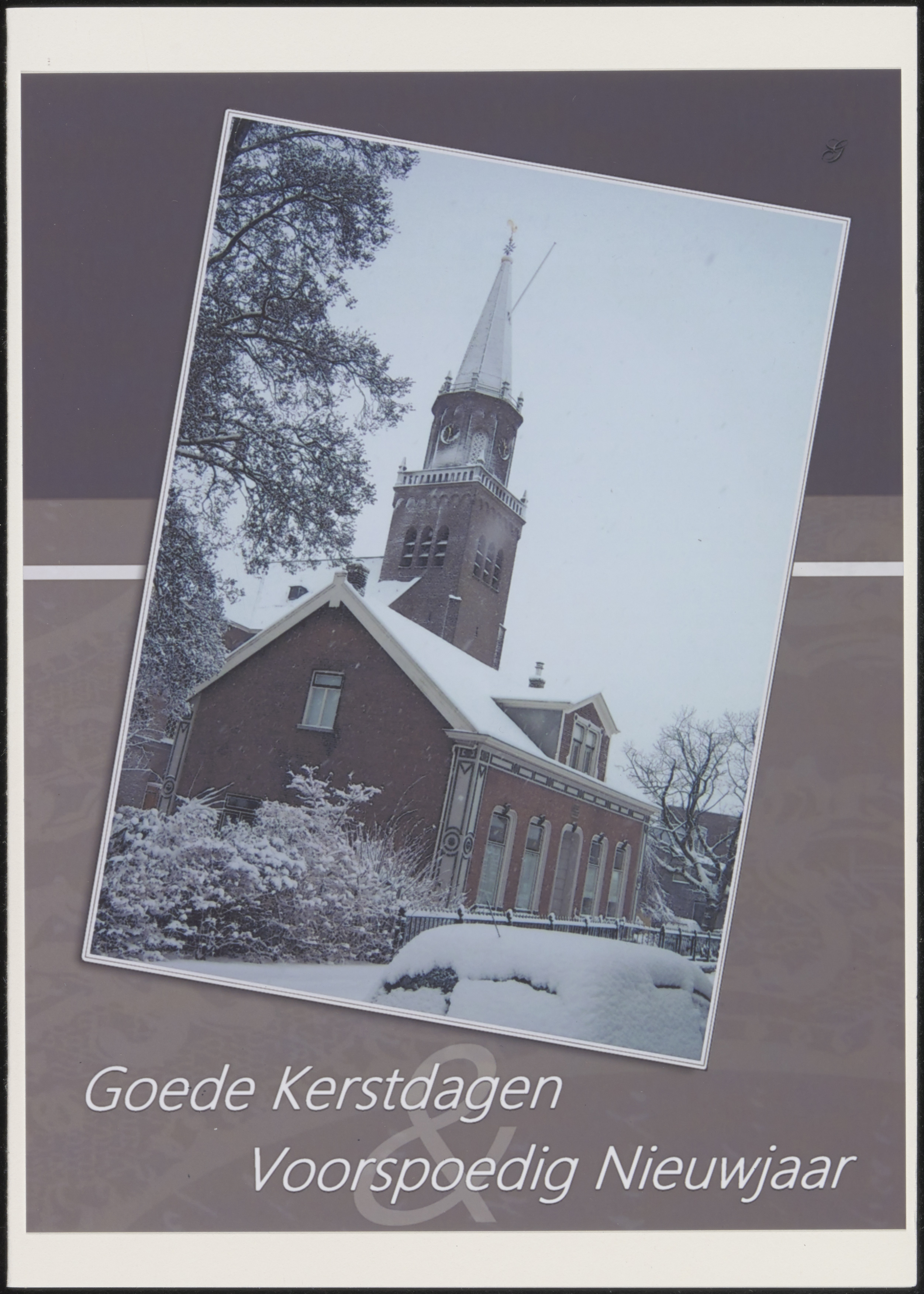 Kerst- en Nieuwjaarskaart kaart met de pastorie van de Grote kerk aan het Cortgene in …