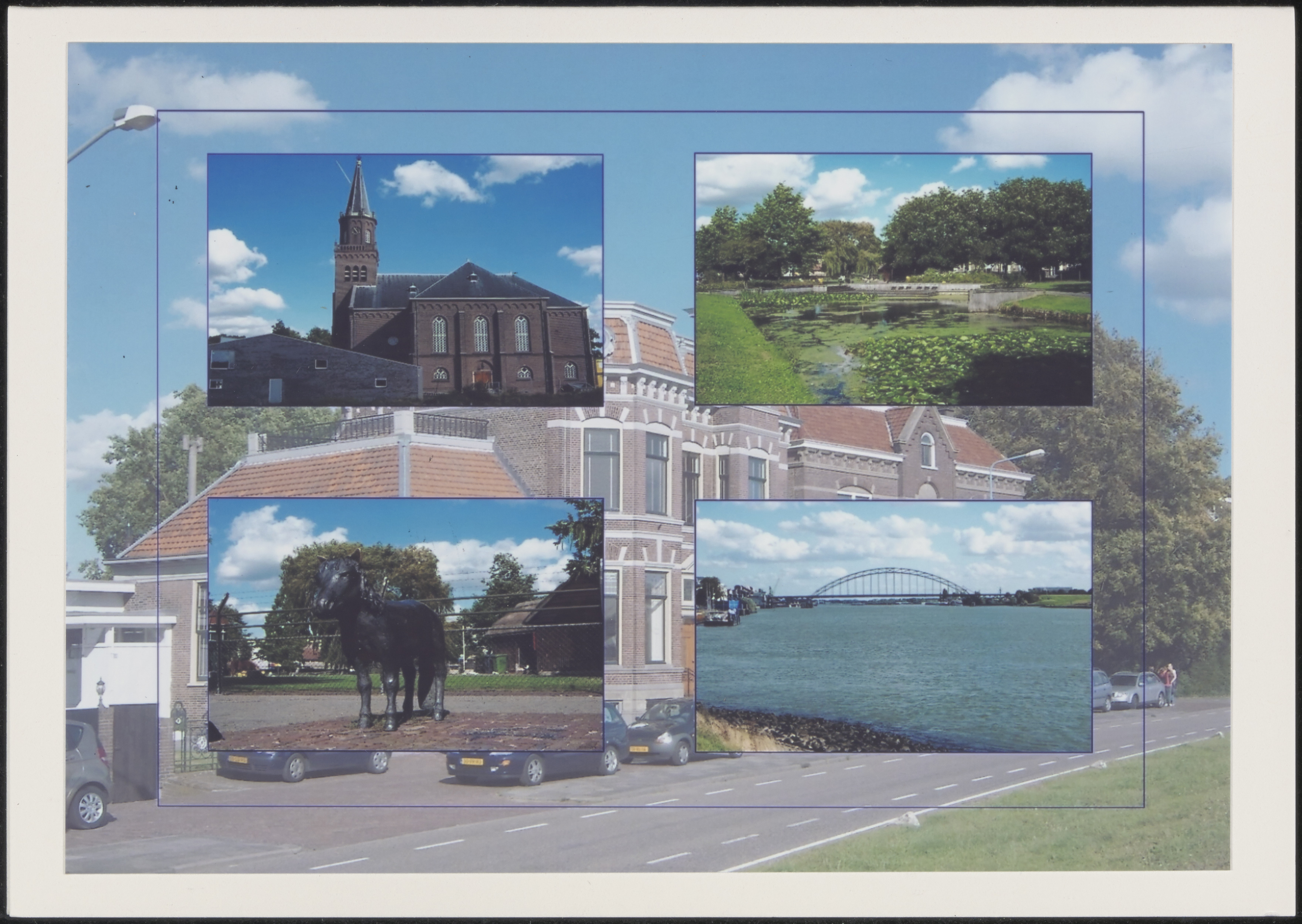 - Alblasserdam. Linksboven: Grote Kerk aan het Cortgene. Rechtsboven en linksonder: Kinderboerderij De Plantage. Rechtsonder: Brug over de Noord.