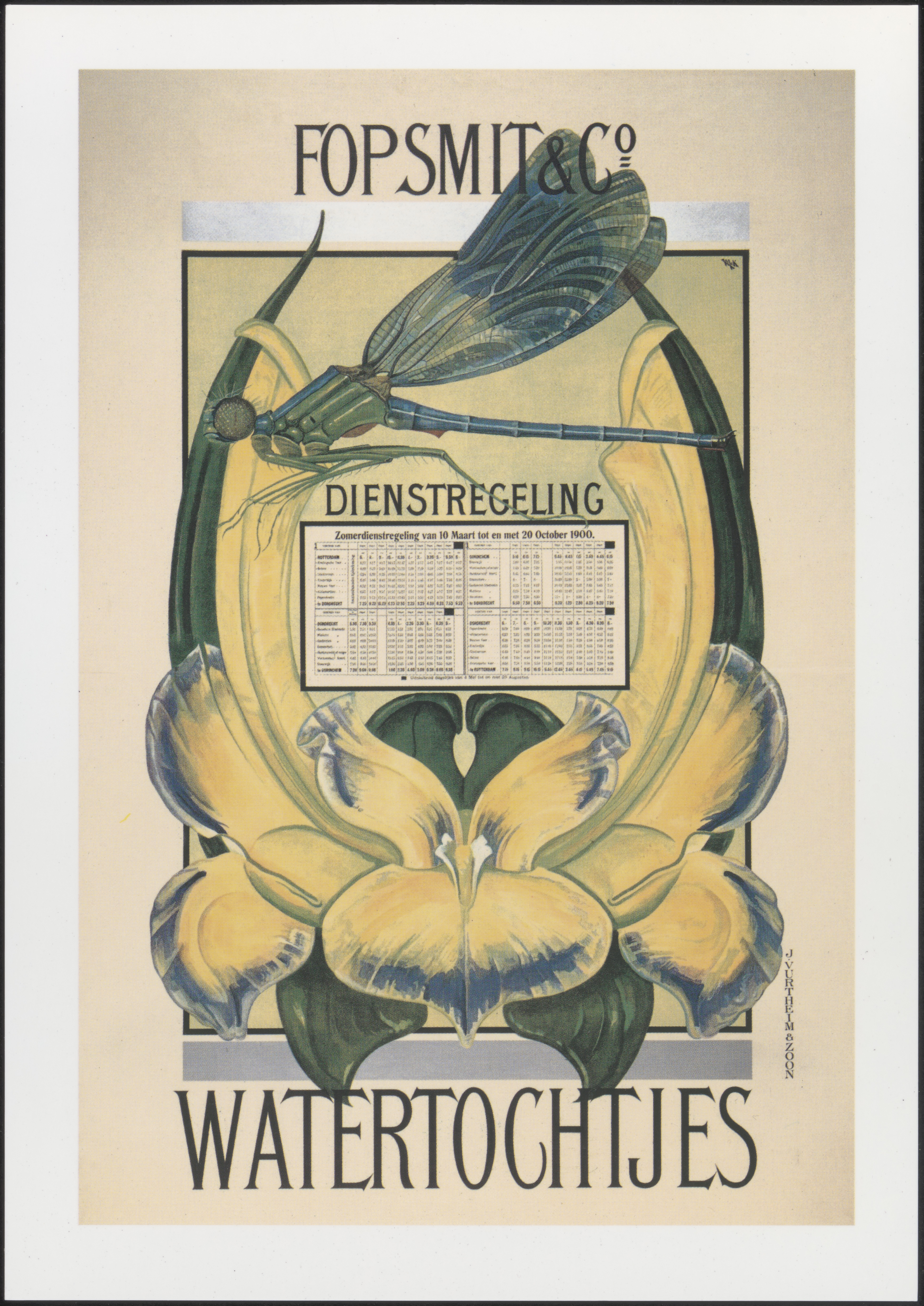 - Affiche van rederij Fop Smit met de dienstregeling van de vaartochten.