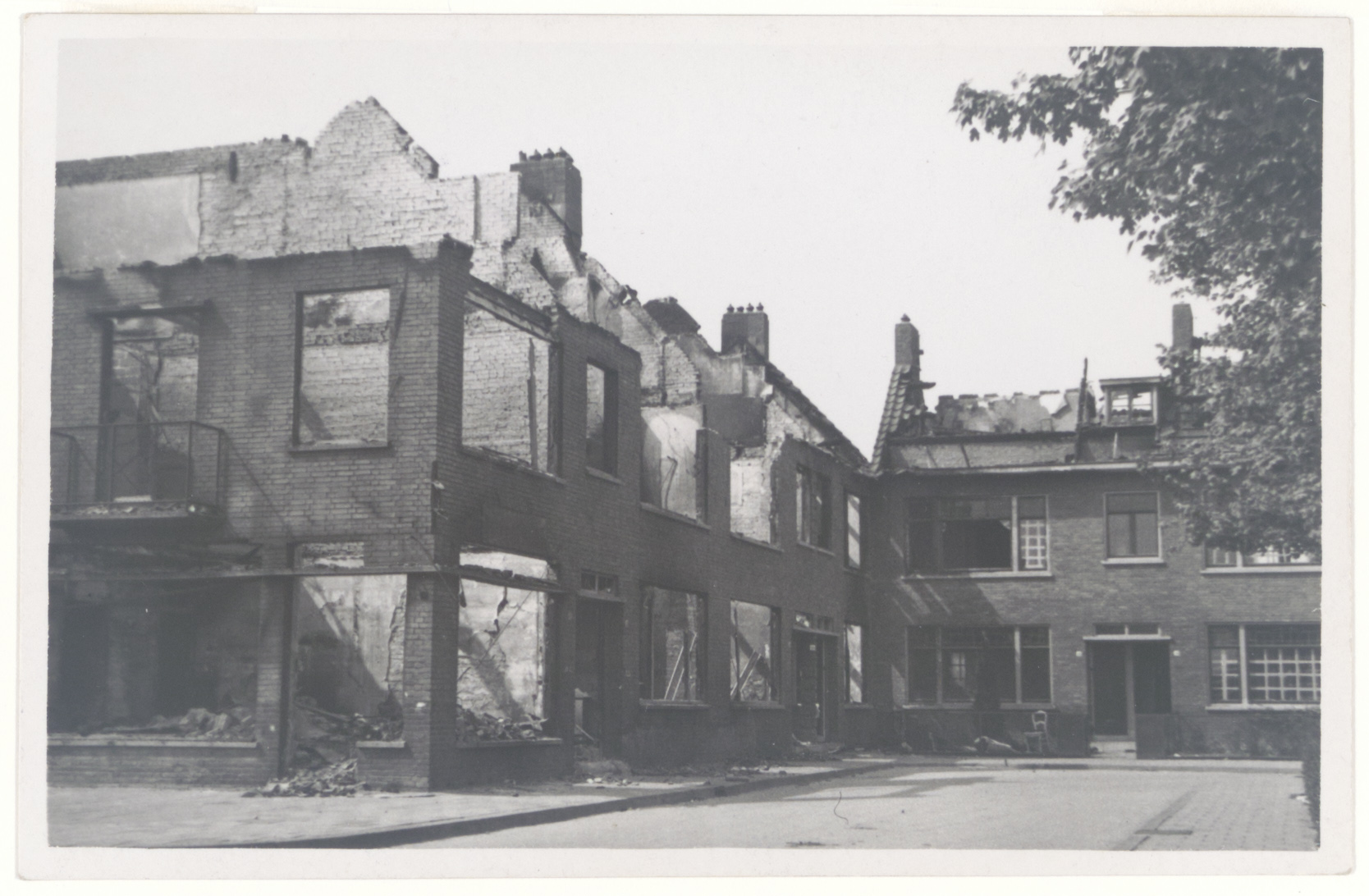 Getroffen huizen door het oorlogsgeweld in mei 1940 in de hoek Vincent van Goghstraat …