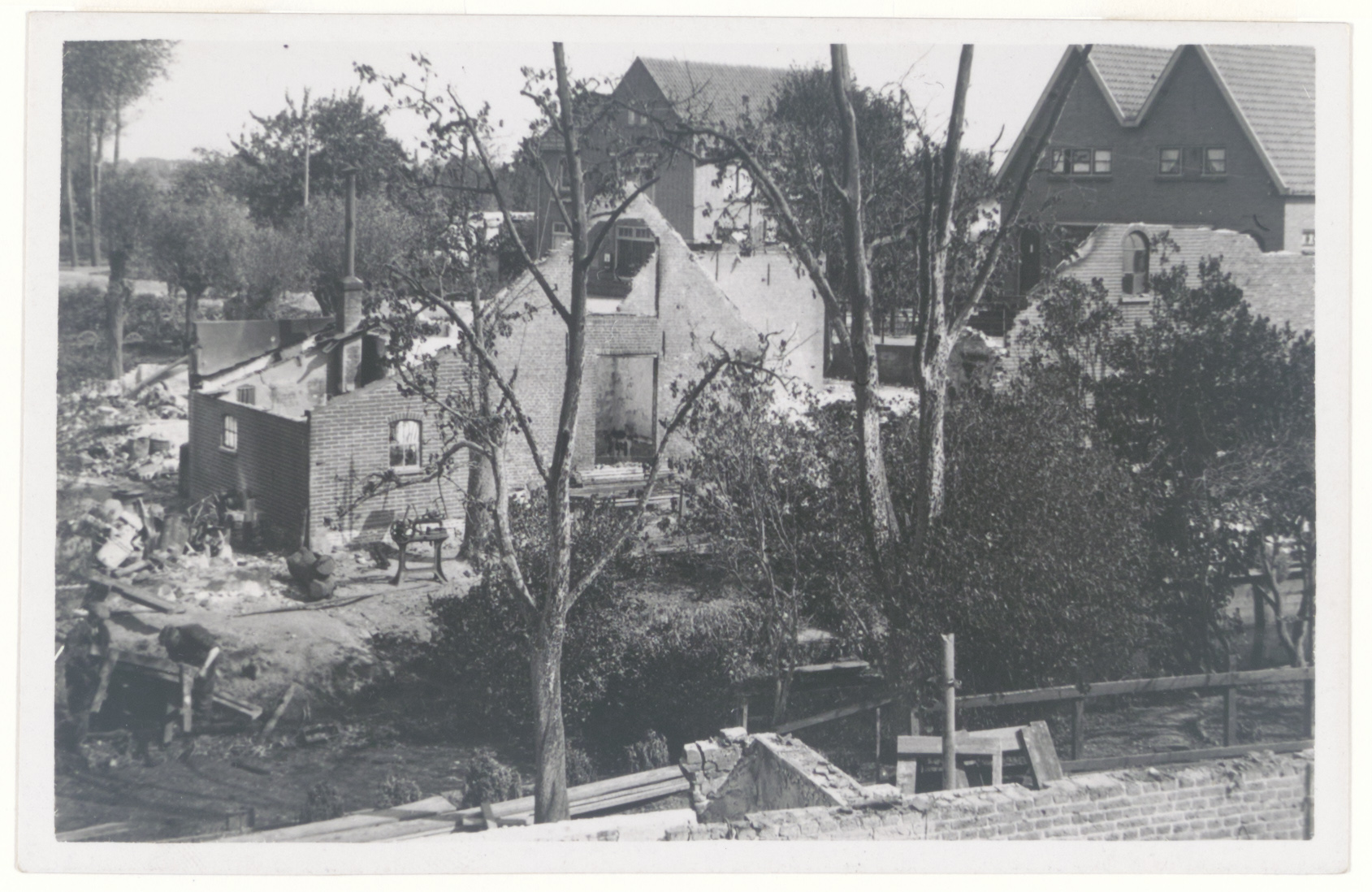 - Kapot geschoten huizen in de meidagen van 1940 aan de Amstelwijckweg nabij de hoek met de Wieldrechtse Zeedijk.