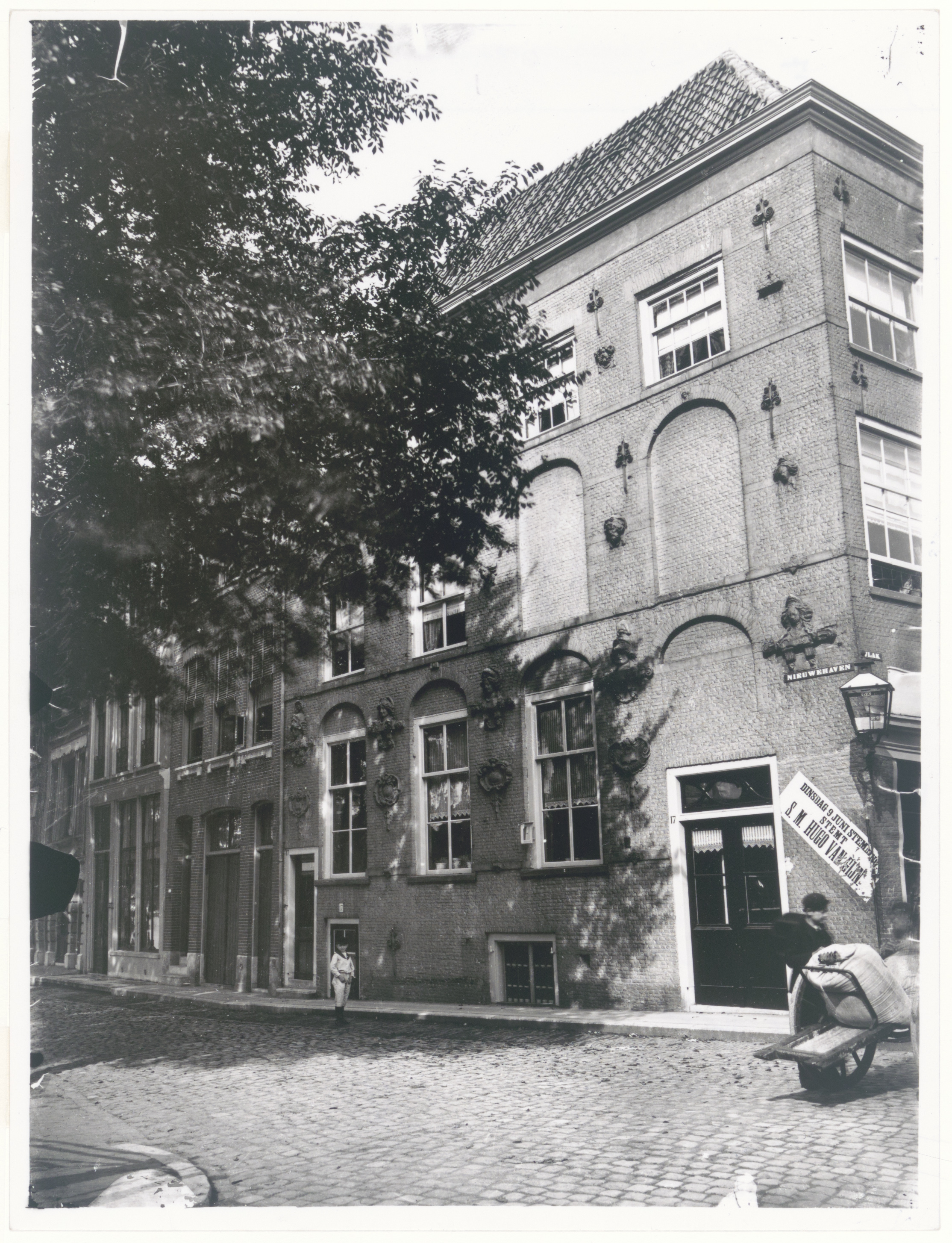 Het "Huis met de Hoofden" op de hoek van het Vlak en de Nieuwe Haven. Dezelfde foto als 552_328889 die gedateerd is op 1896