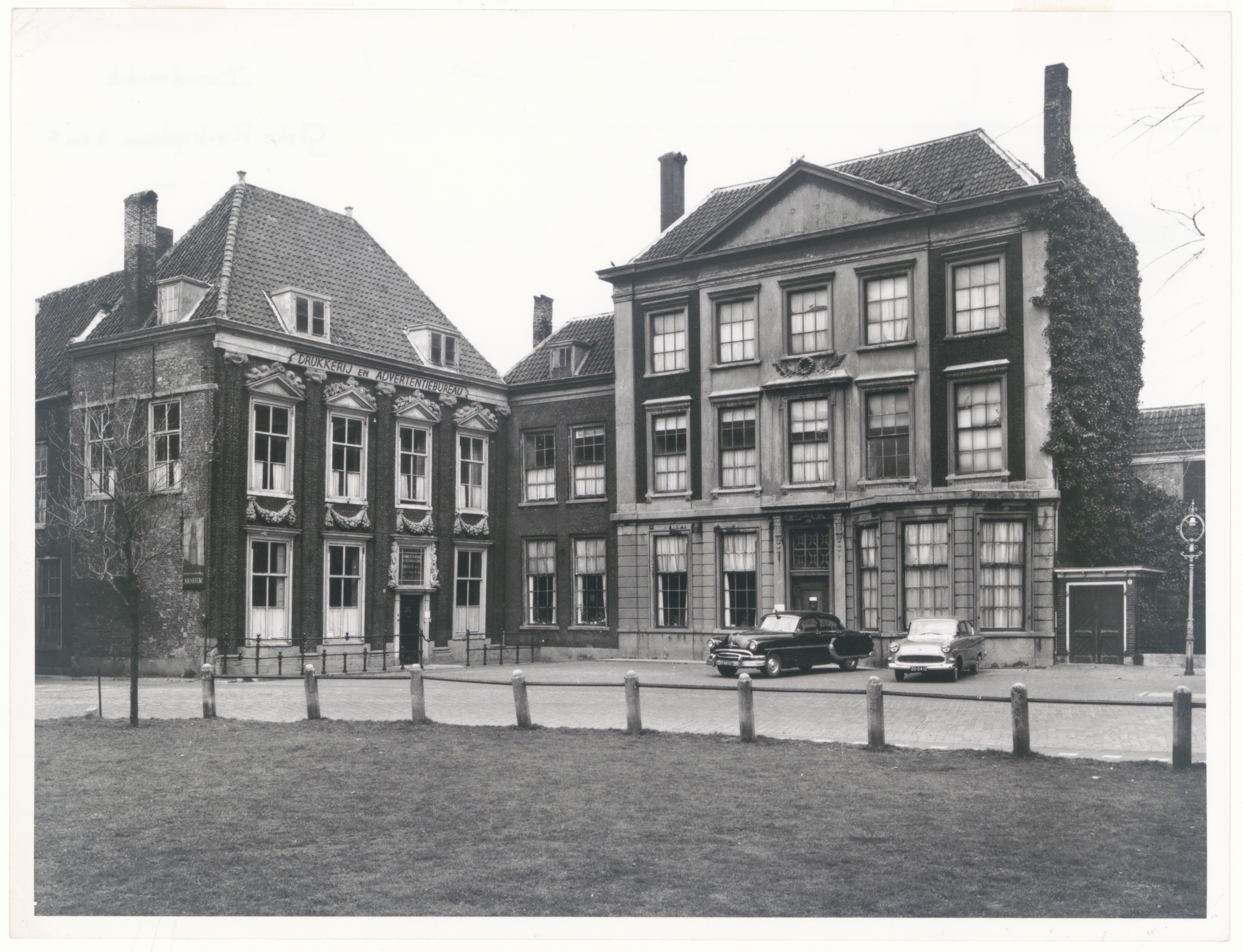 - De noordoostelijke hoek van het Grotekerksplein, Geheel links de Kerkstraat met het pand van drukkerij Blussé.