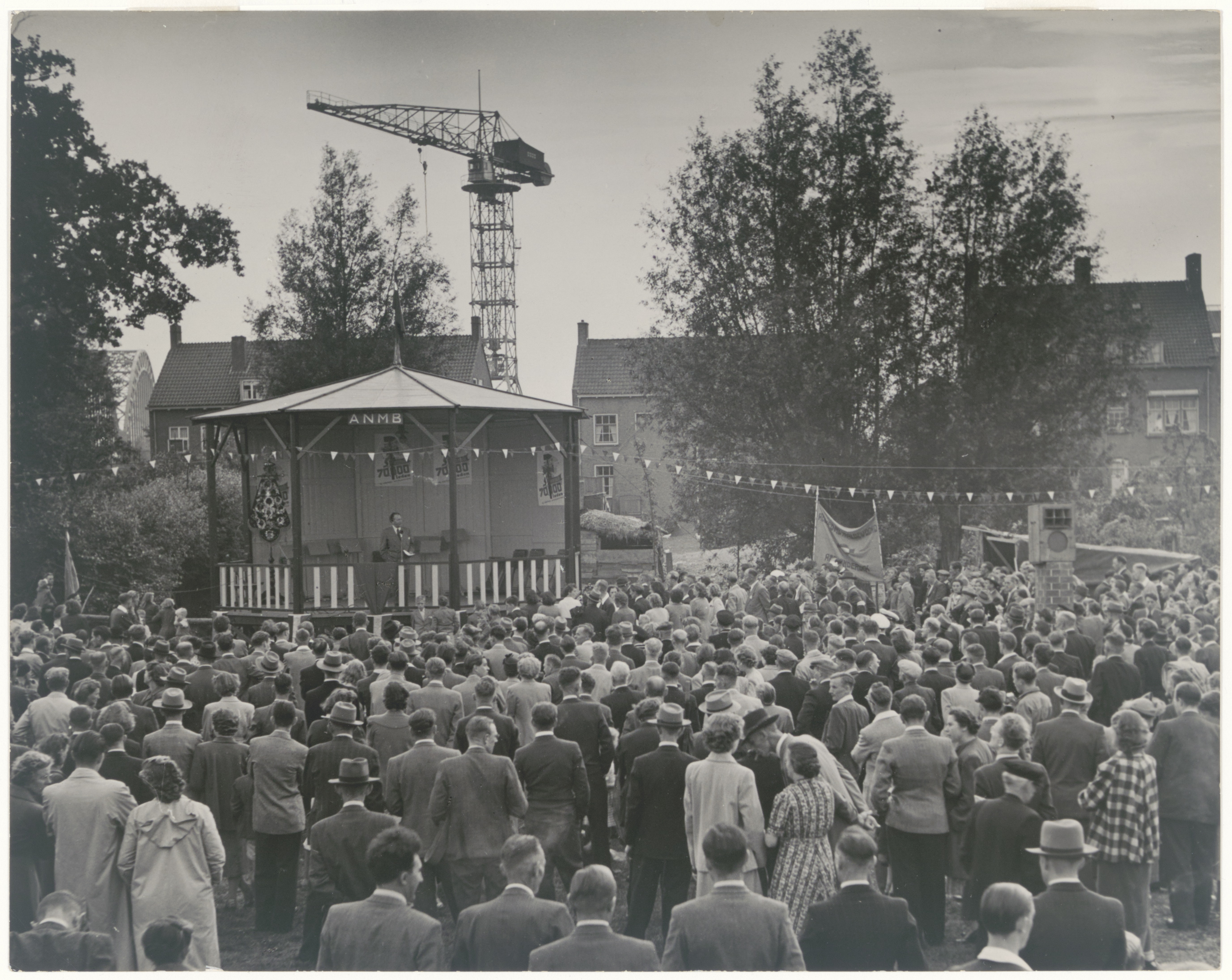 - Bijeenkomst van de Algemene Nederlandse Metaalbewerkersbond bij een muziektent achter woningen aan de Ruigenhil in Alblasserdam.