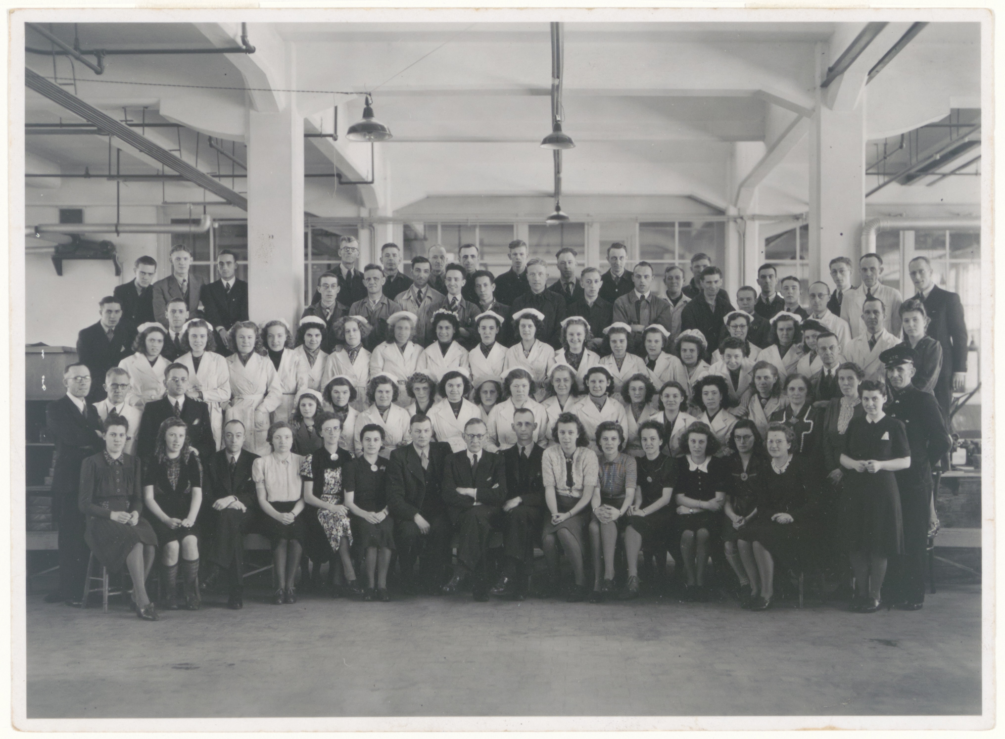 Personeel van de Ardath sigarettenfabriek aan de Burgemeester de Raadtsingel.