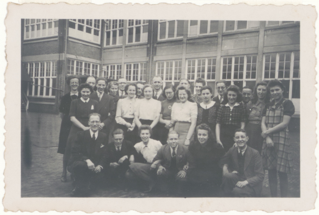 Een groep collega's bij de Ardath sigarettenfabriek aan de Burgemeester de Raadtsingel.