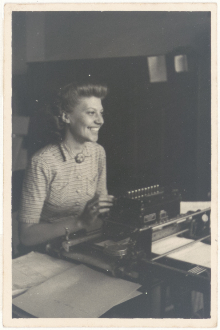 Typiste op de Ardath sigarettenfabriek aan de Burgemeester de Raadtsingel.