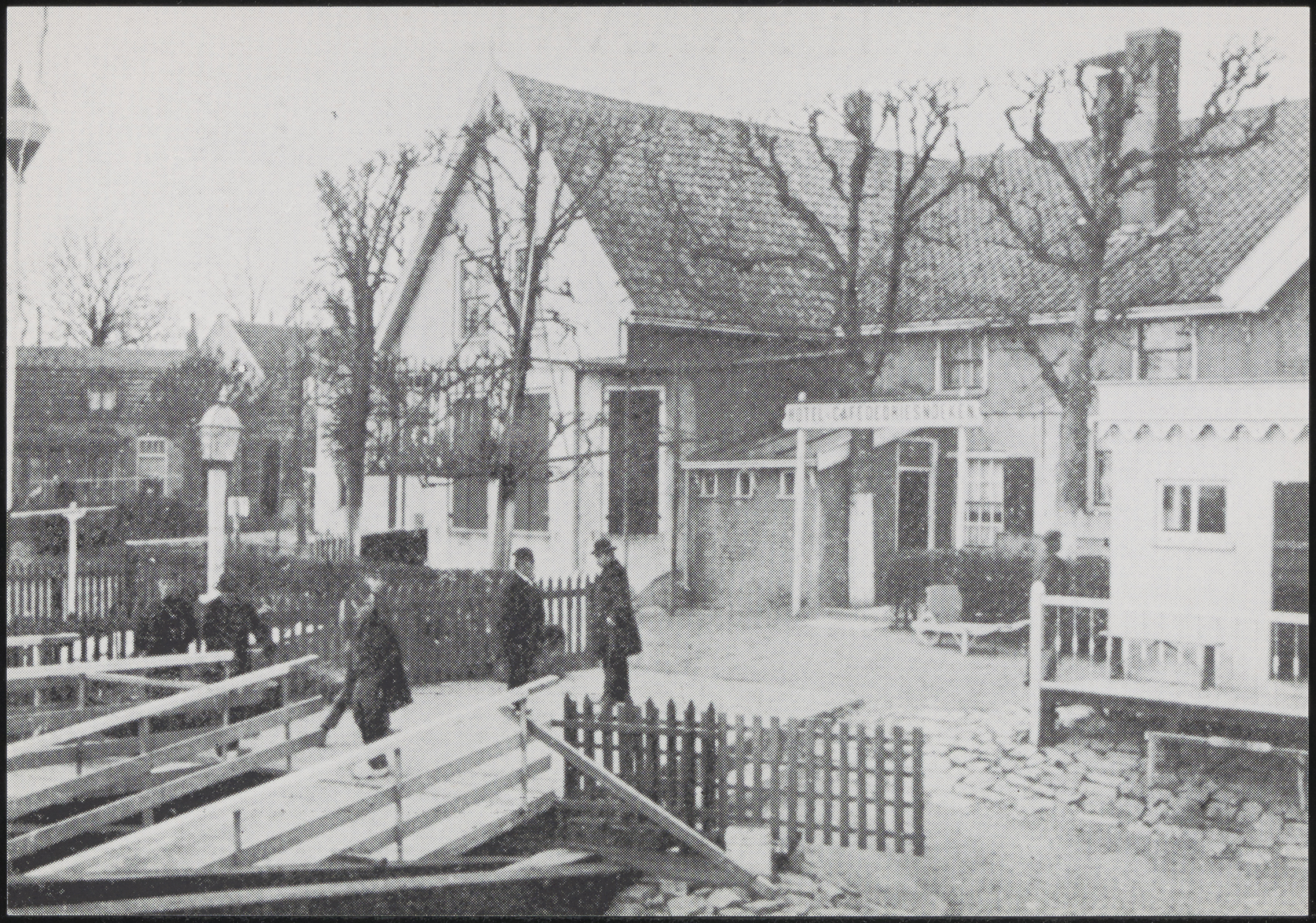 Hotel-café De Drie Snoeken bij de aanlegsteiger van Fop Smit aan de Rivierdijk bij De …