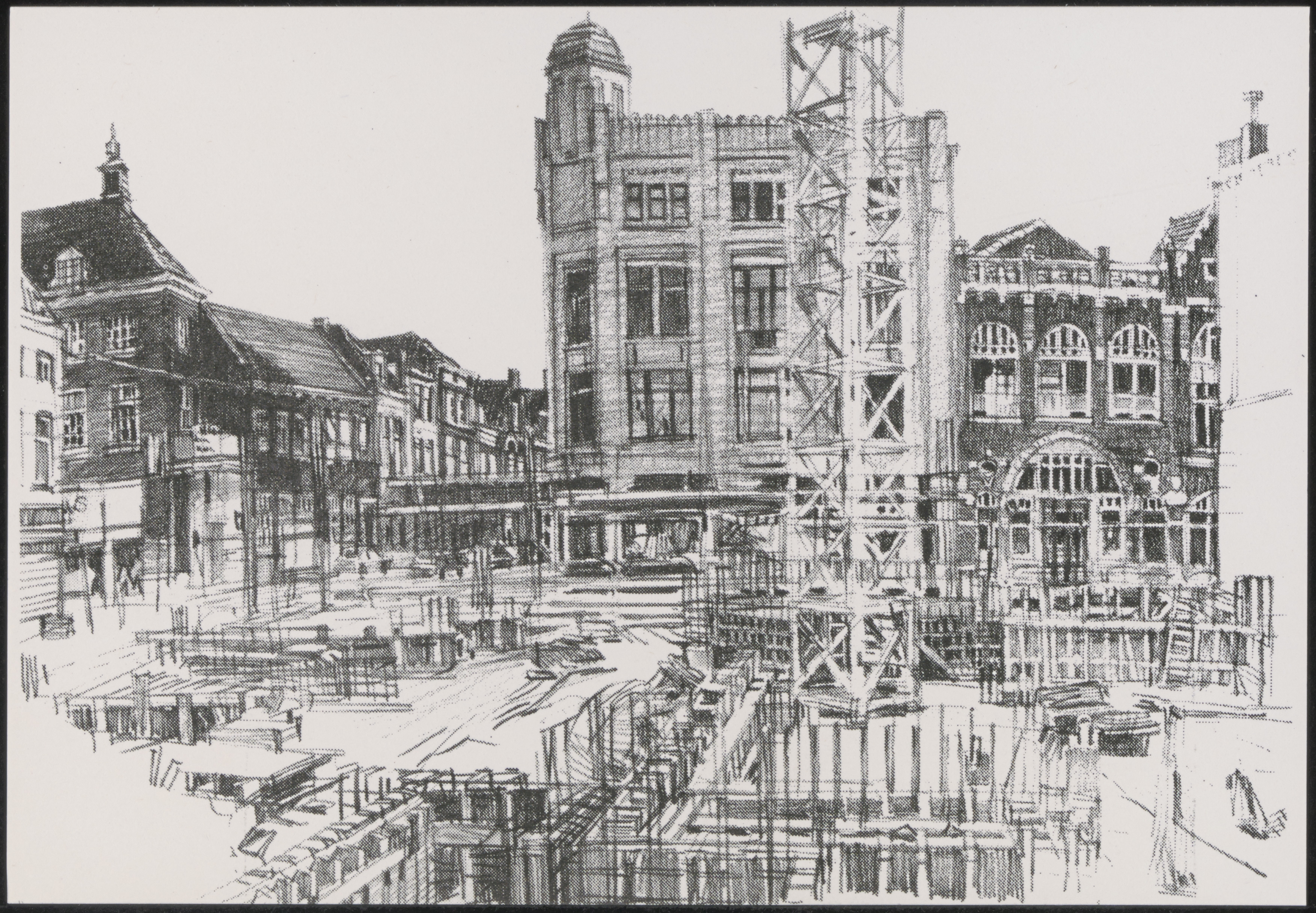 Tekening door Led Brand van de bouw van de parkeergarage aan de Visstraat op de plaats …