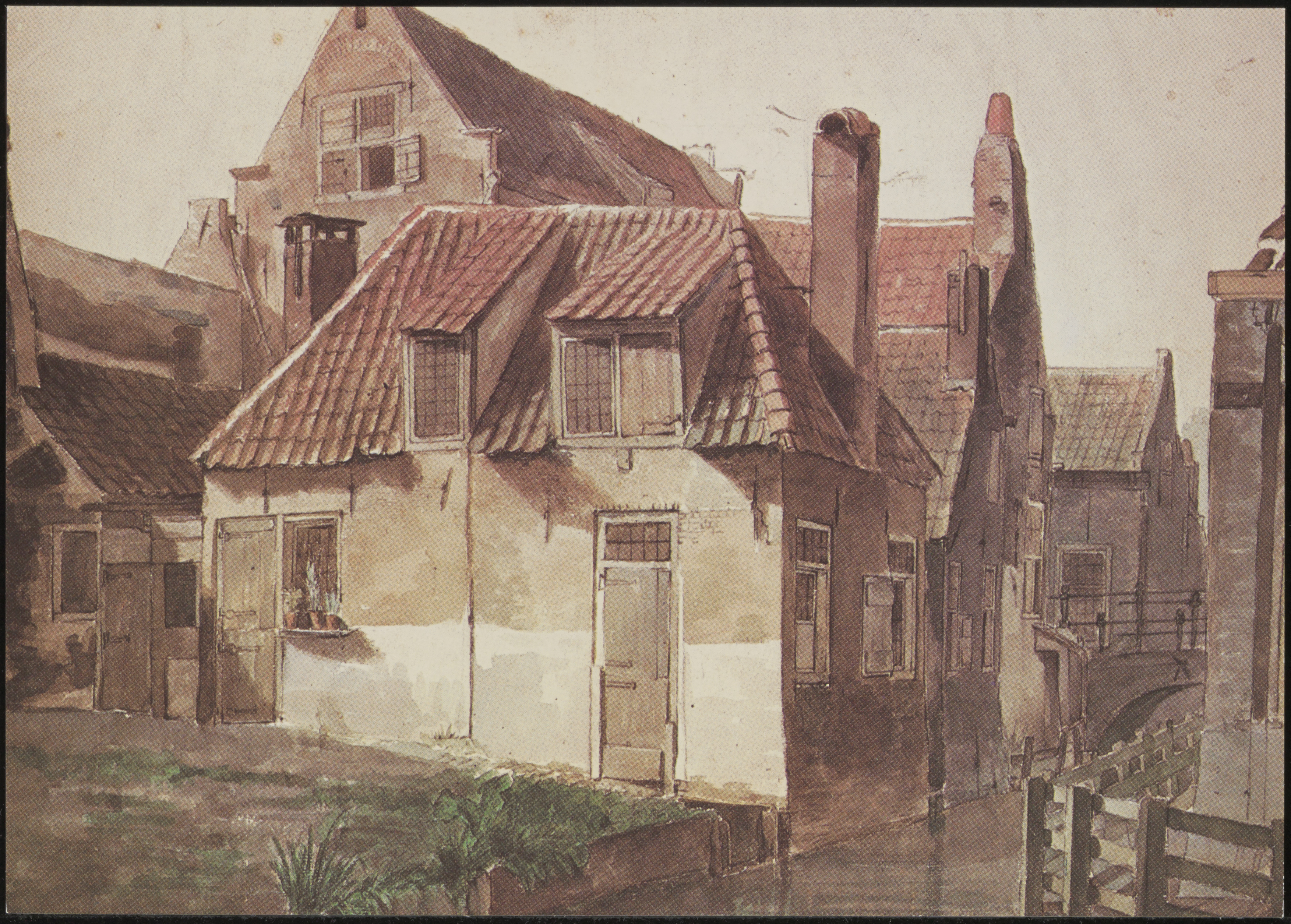 - Schilderij van de oostelijke brug in de Heer Heymansuysstraat, gezien vanuit het noorden. Links de Kattengang.