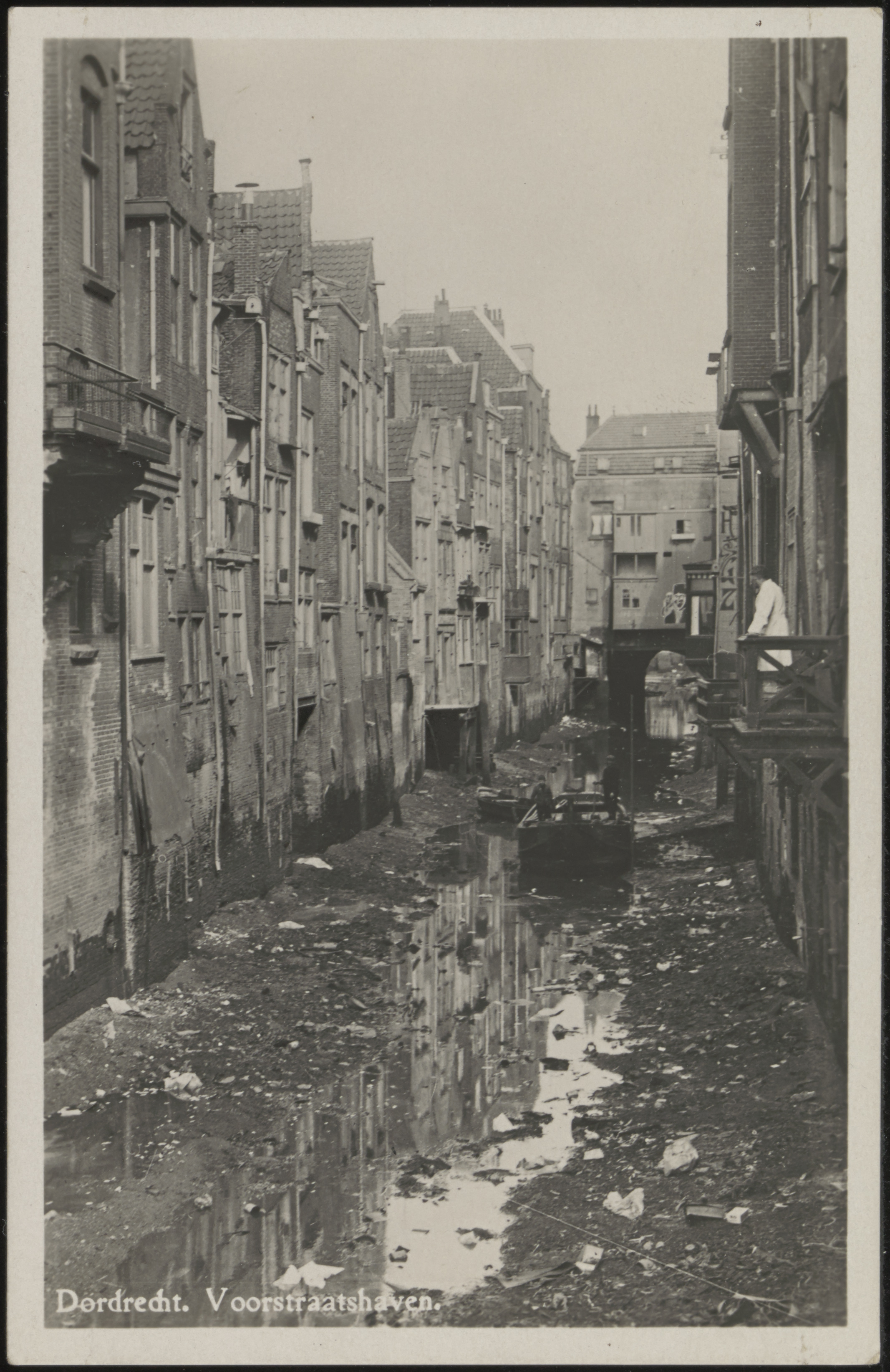 - Voorstraatshaven vanaf de Visbrug richting Tolbrug. Links de Groenmarkt, rechts de Voorstraat.