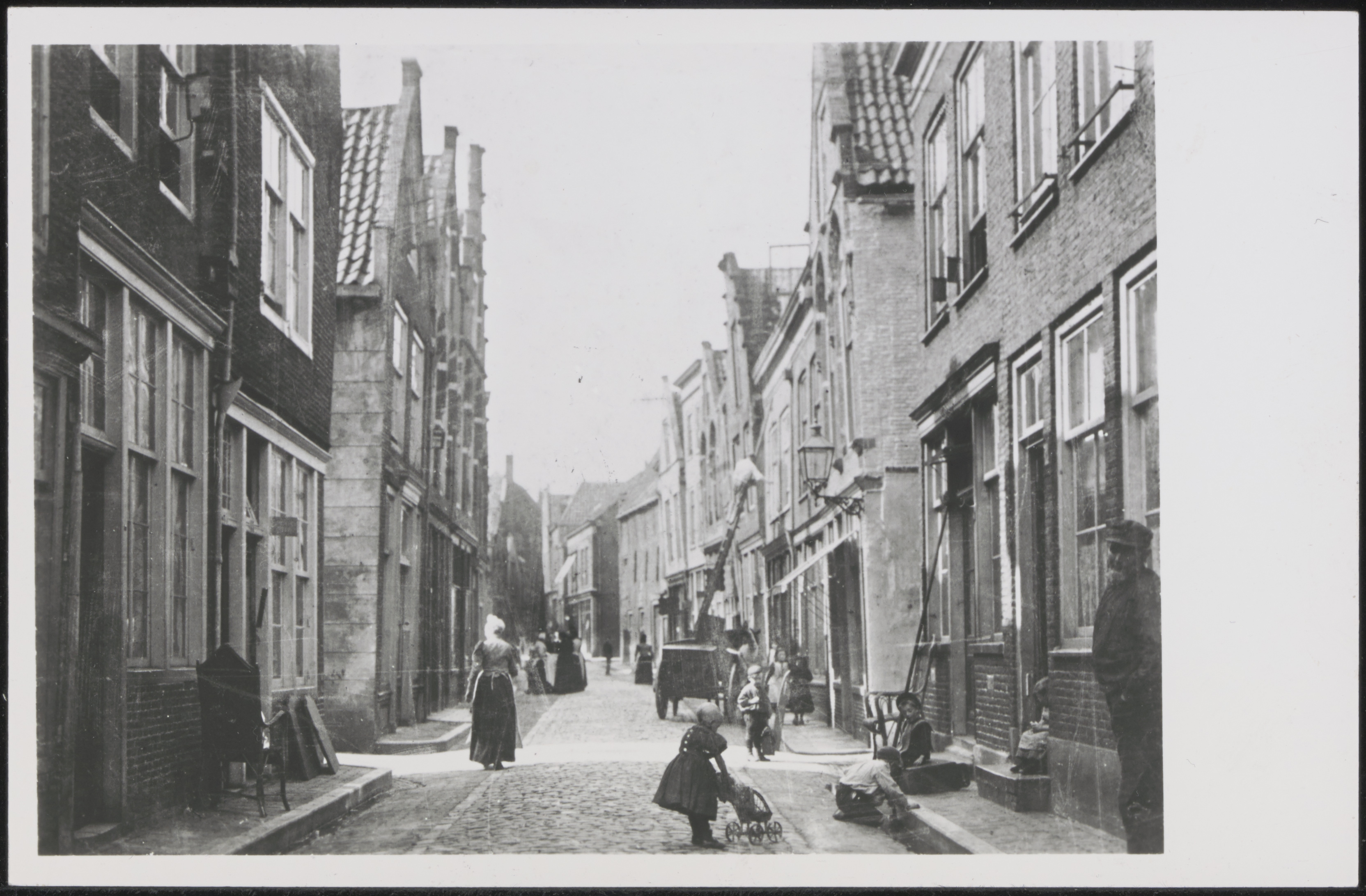 - Kolfstraat richting Voorstraat. Het straatje links en rechts op de voorgrond is de Dwarsgang.