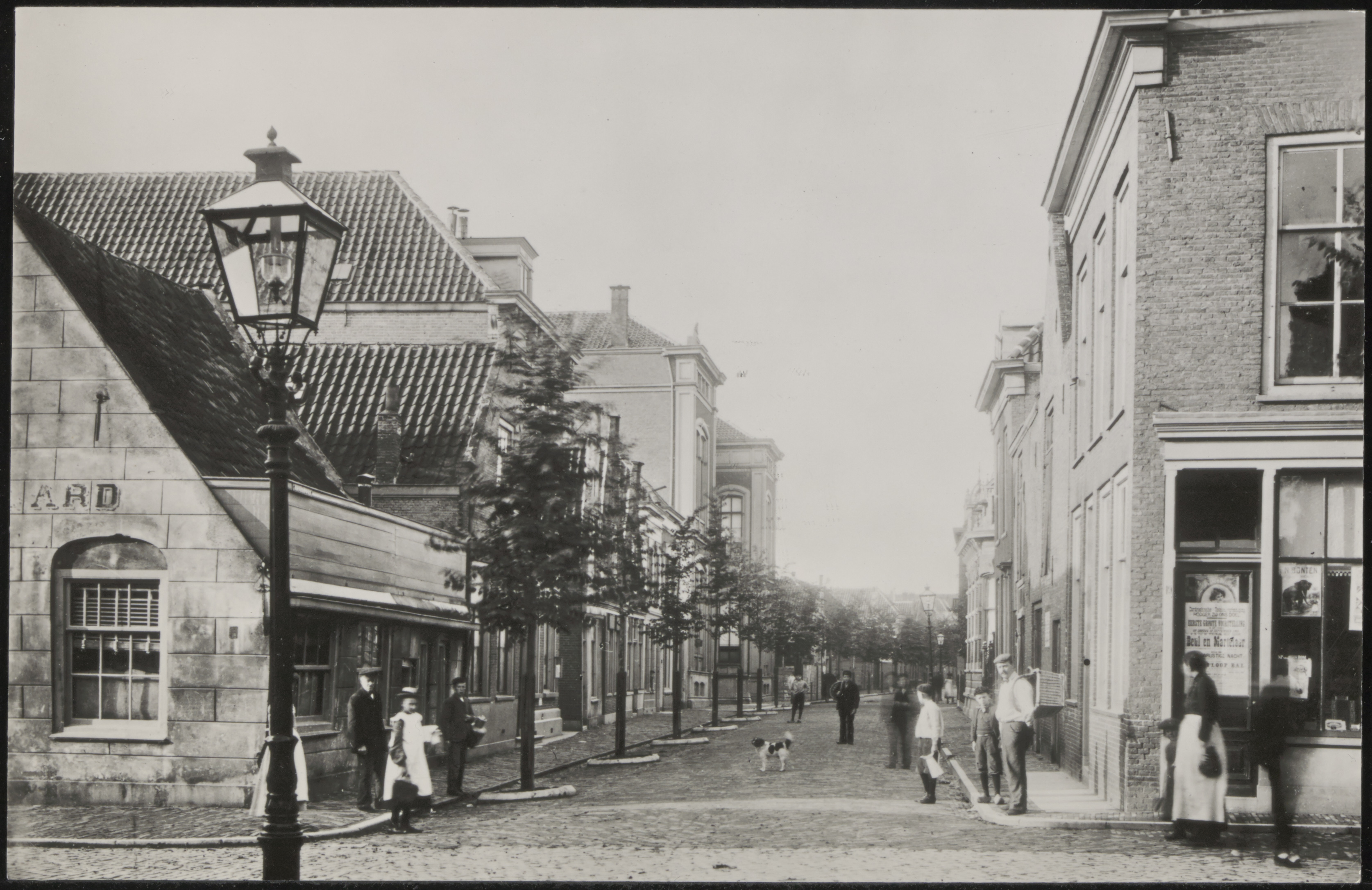 - Kromhout vanaf de Sint Jorisweg richting Warmoezierspad. Aan het eind links het Wees- en Armhuis.