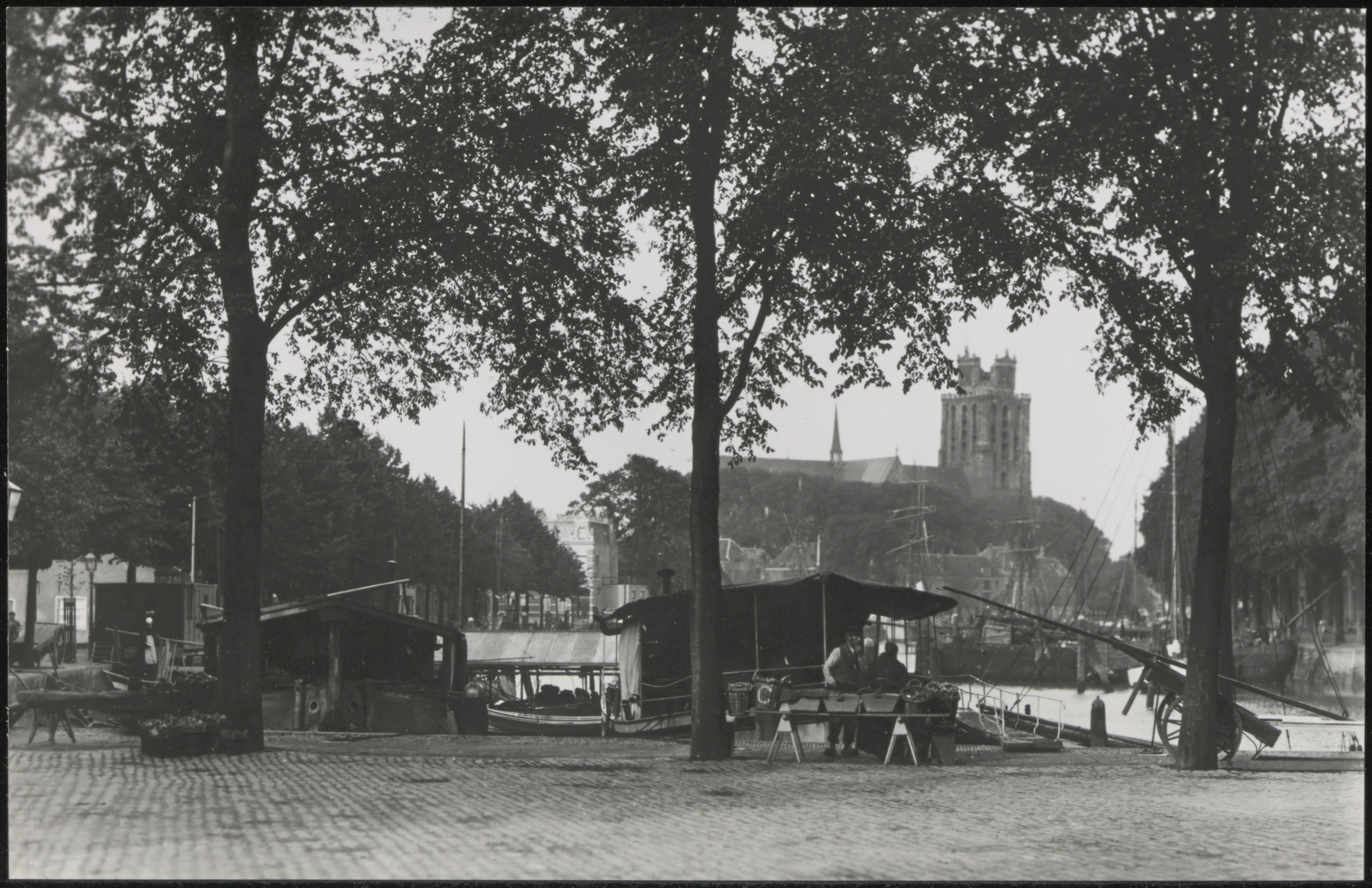 - De Nieuwe Haven vanaf de Aardapplemarkt richting Grote Kerk. Links de Knolhaven.