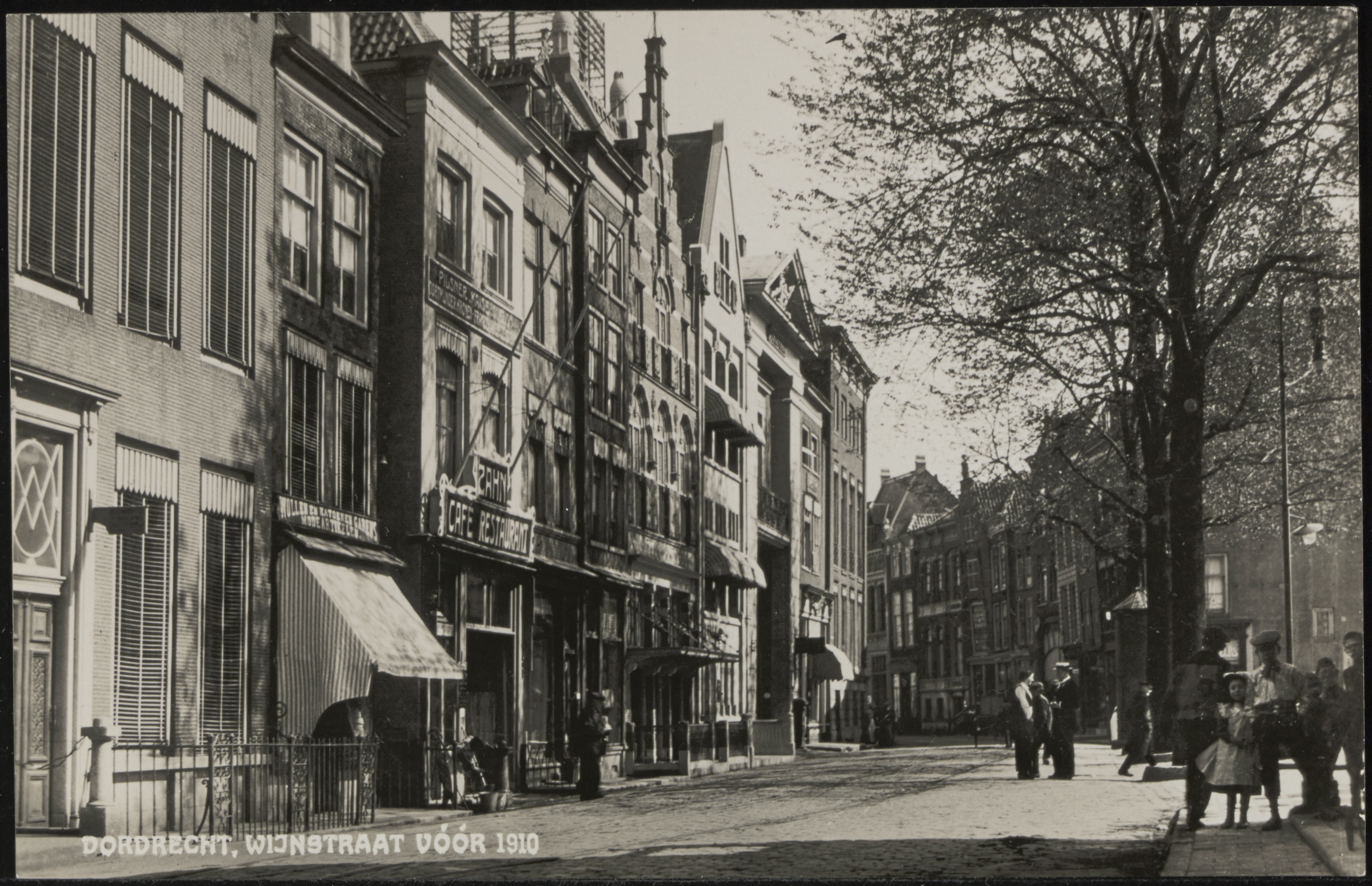 - De Wijnstraat vanaf het Scheffersplein. Links café-restaurant Zahn.