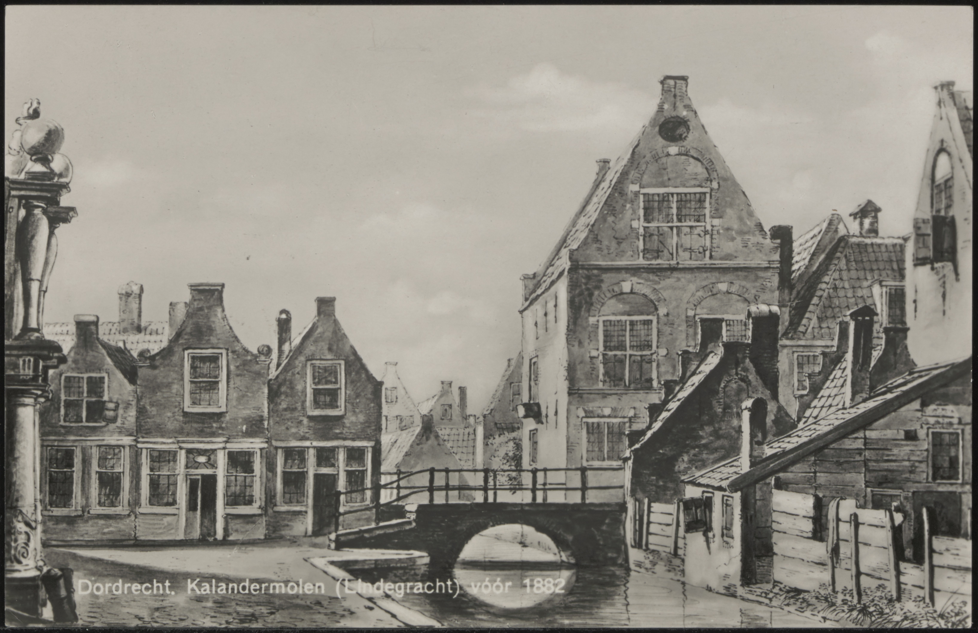 Tekening door J. Rutten van Huis De Kalandermolen op de hoek van de Lindengracht (thans …