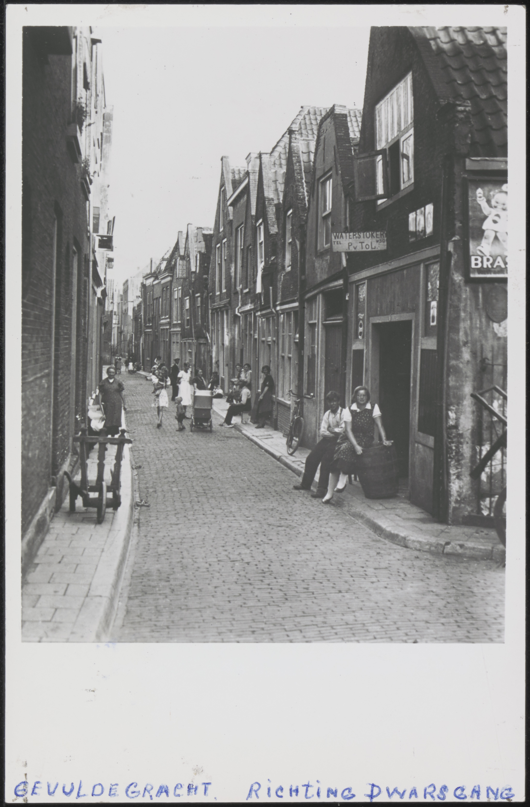 Gevulde gracht, gezien vanaf de Blindeliedengasthuissteeg naar de Dwarsgang.