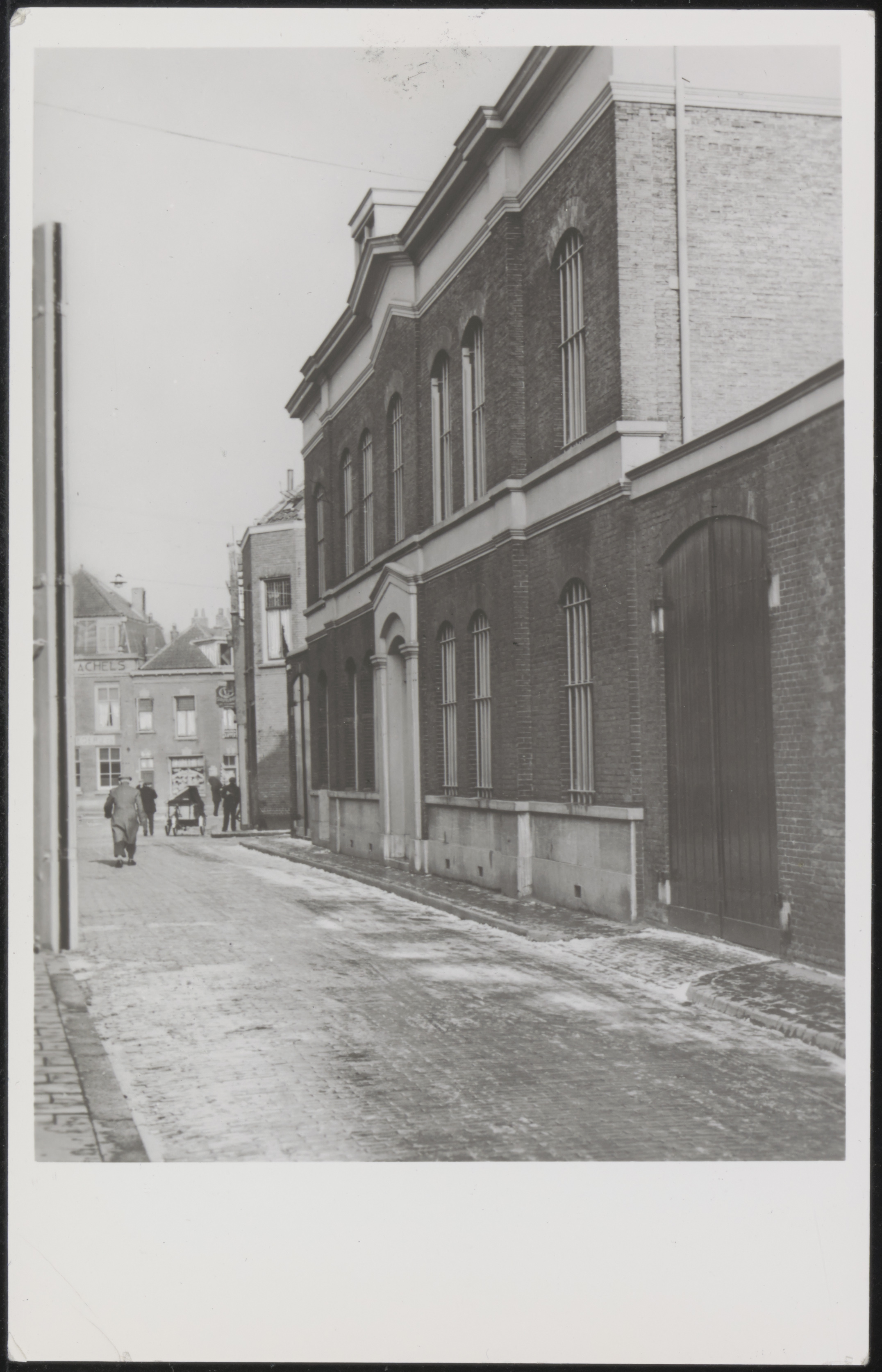 - Het Huis van Bewaring in de Doelstraat op de hoek van het Stek. Op de achtergrond het Weeshuisplein.