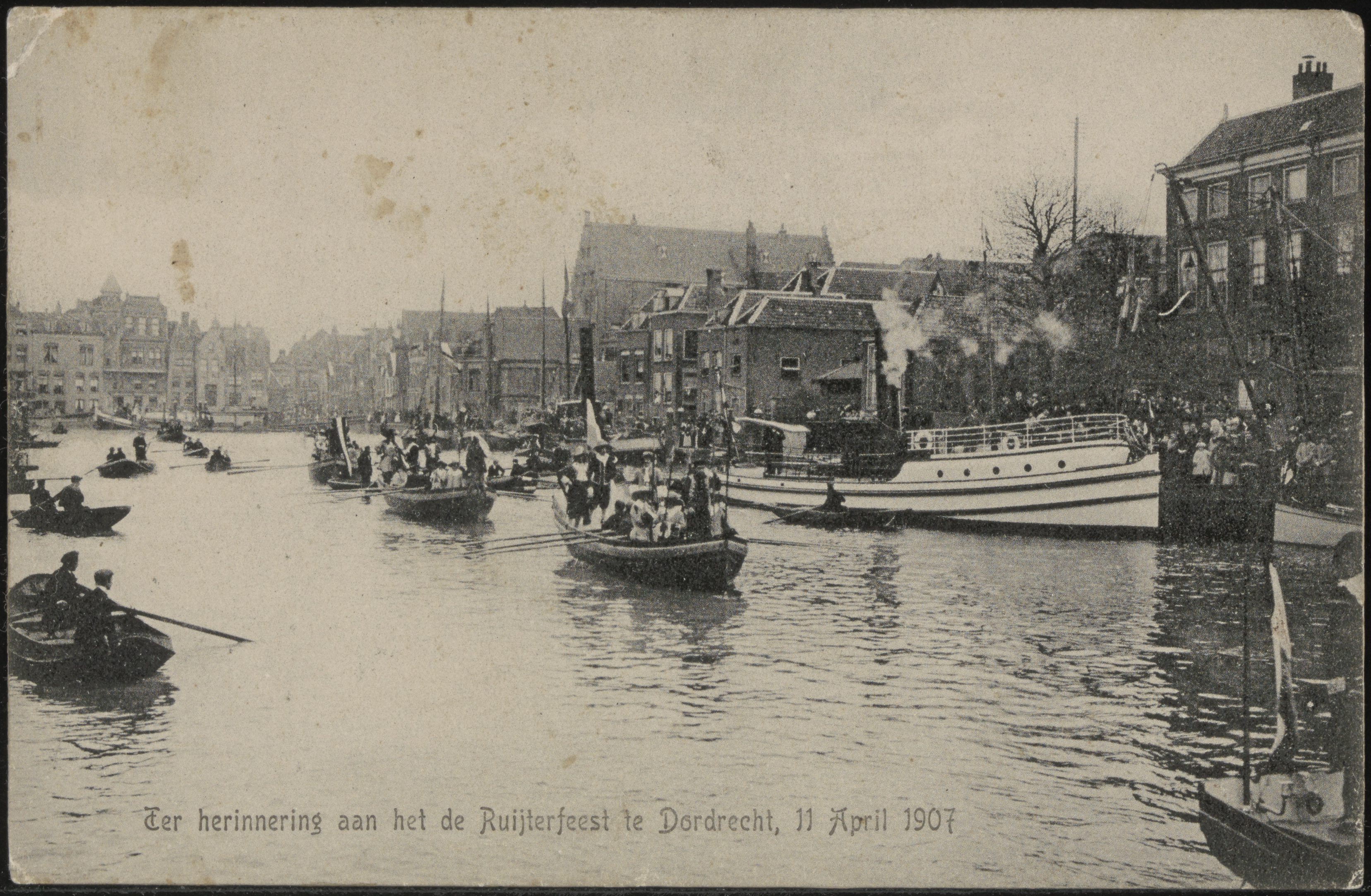 - Sloepen met als zeesoldaten verklede mannen in de Wijnhaven tijdens het De Ruyterfeest.