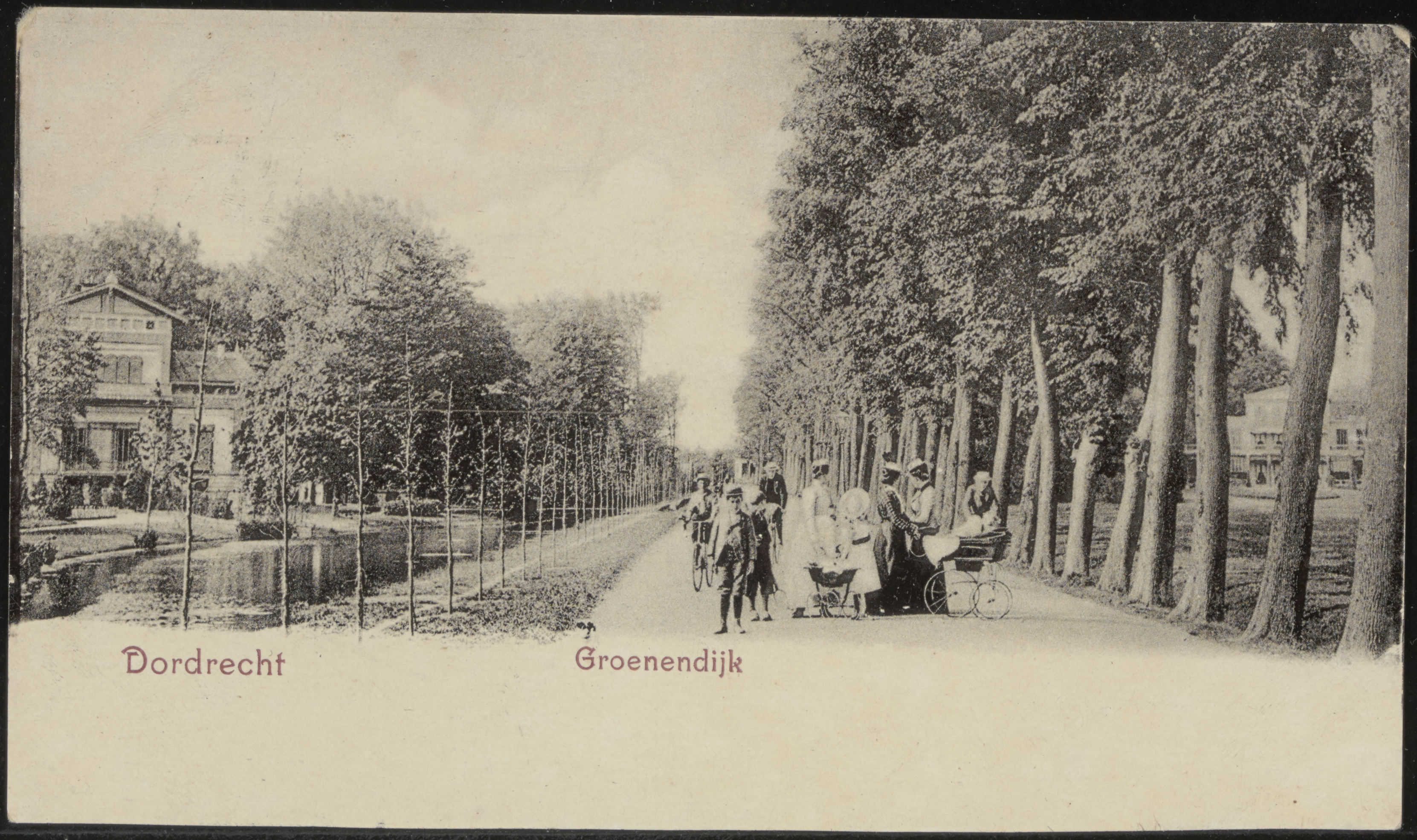 - De Groenedijk. Links villa Merwestein in het gelijknamige park.