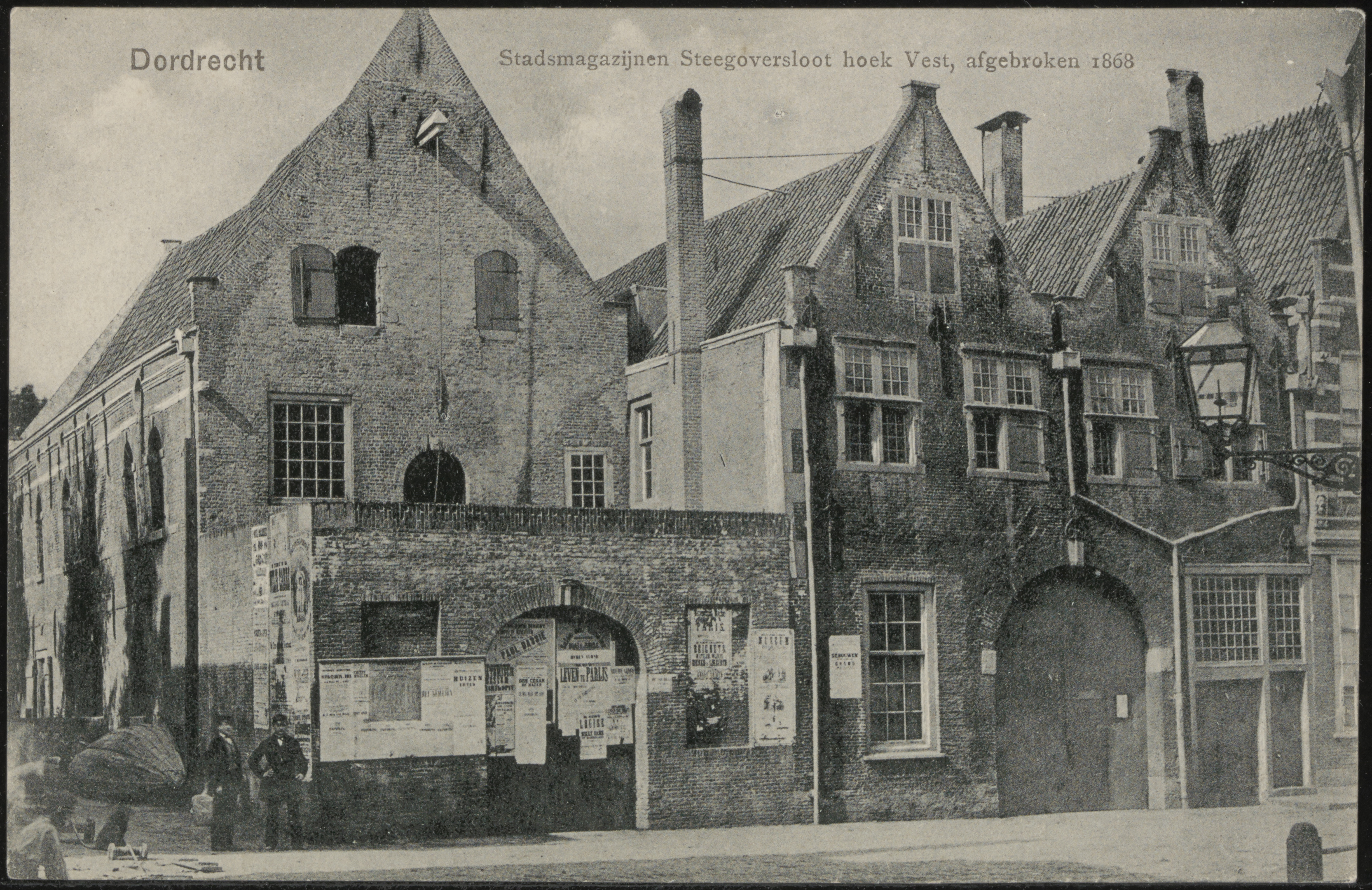 - Het in 1868 afgebroken Stadsmagazijn (vroeger soldaten- en artilleriehuis) op de zuidelijke hoek van het Steegoversloot en de Vest.