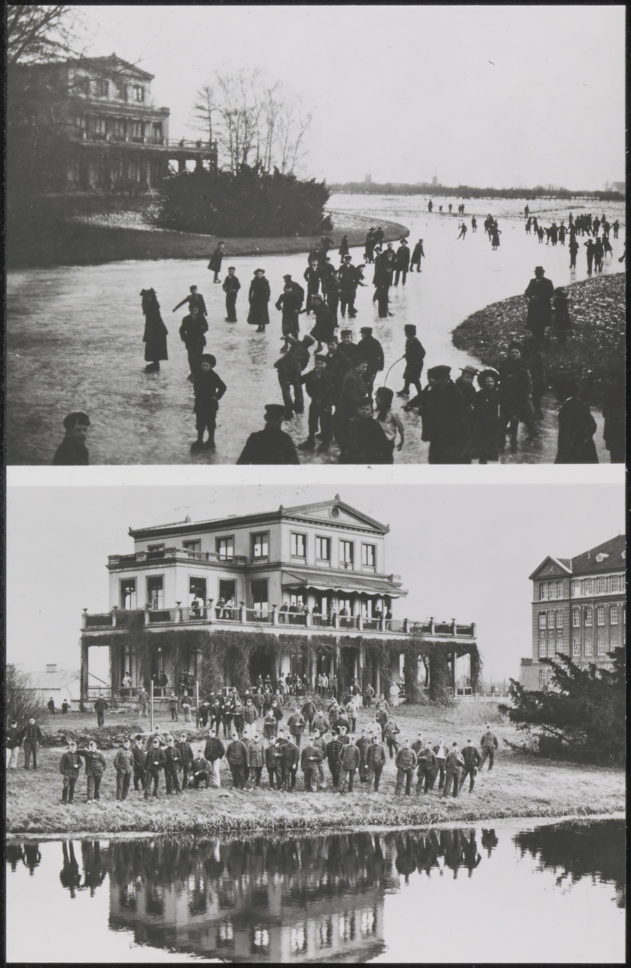 - Boven: Villa Noordhove aan de Groenedijk. Onder: Dezelfde villa tijdens de mobilisatie van 1914-1918. Rechts de MTS.aan de Oranjelaan.