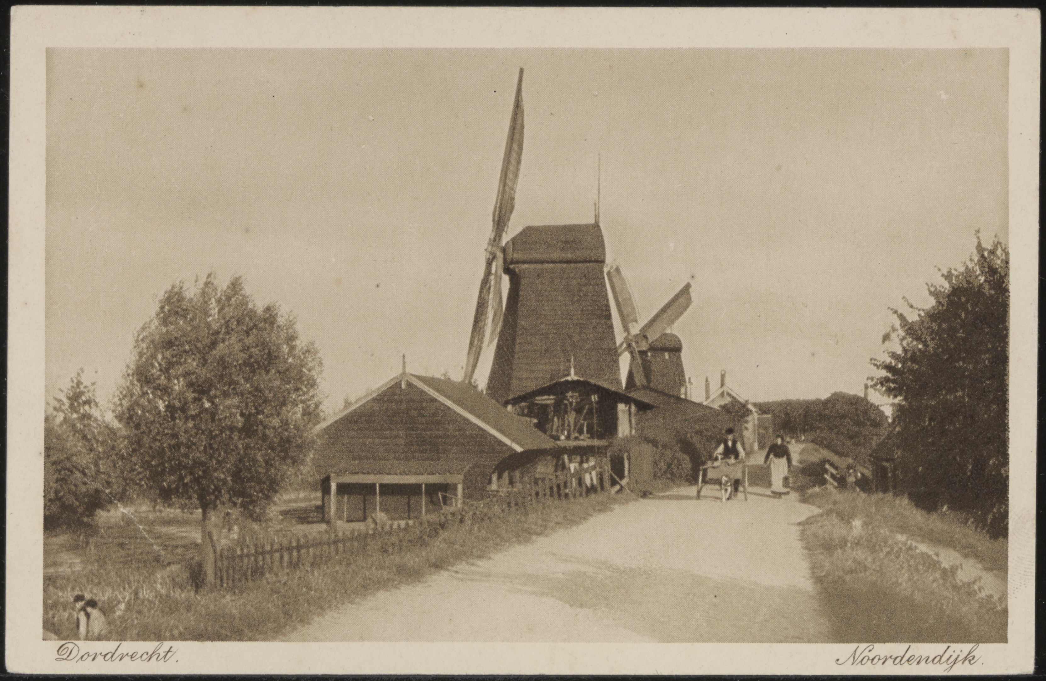 - Houtzaagmolens De Duinen (vooraan) en de Windhond aan de noordzijde van de Noordendijk ten oosten van de Oranjelaan, gezien uit het westen. .