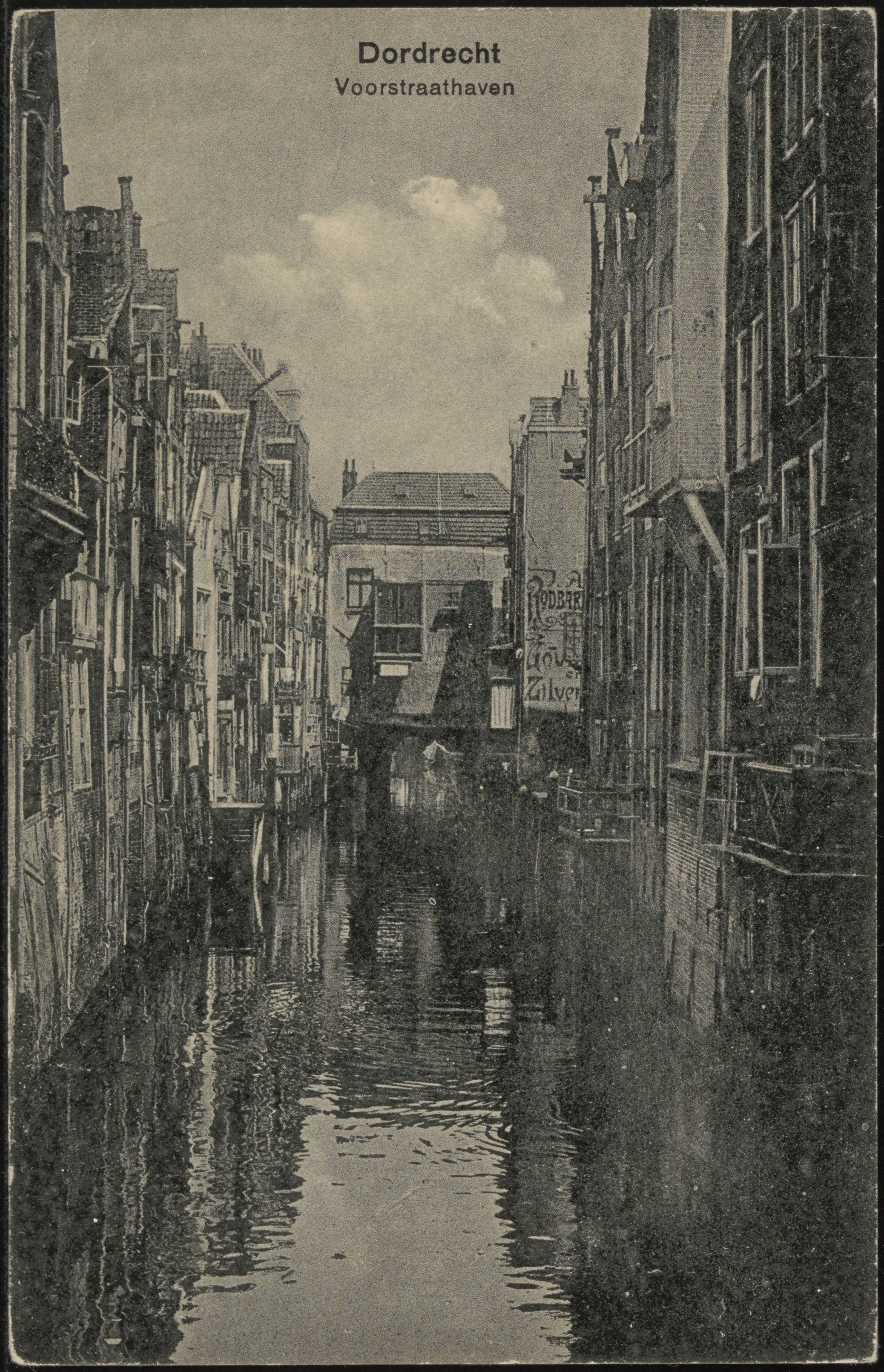 - Voorstraatshaven gezien vanaf de Pelserbrug naar de Lombardbrug. Links de Grotekerksbuurt, rechts de Voorstraat.