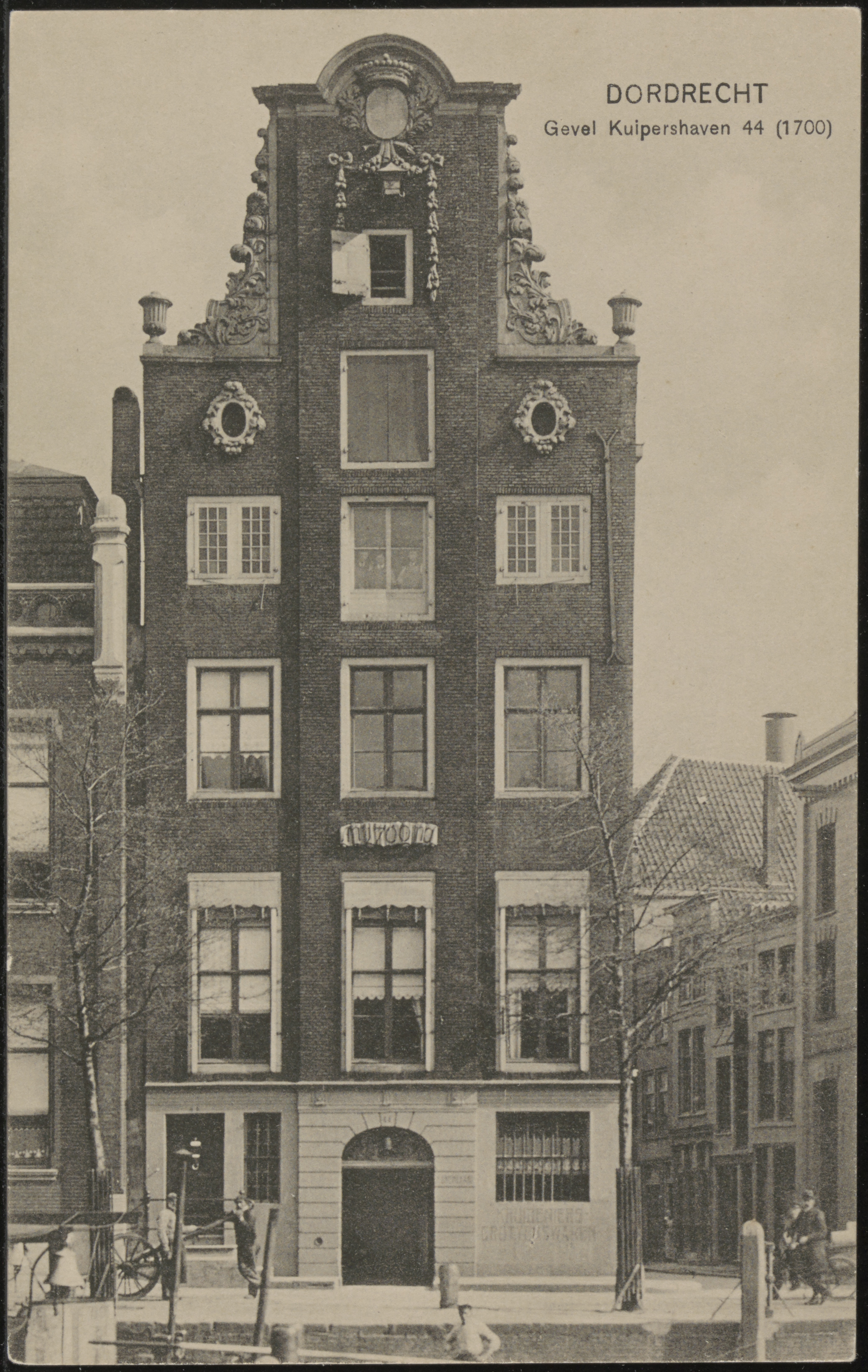 Huis Het Meevat op de hoek van de Kuipershaven en de Schrijversstraat, gezien over de …