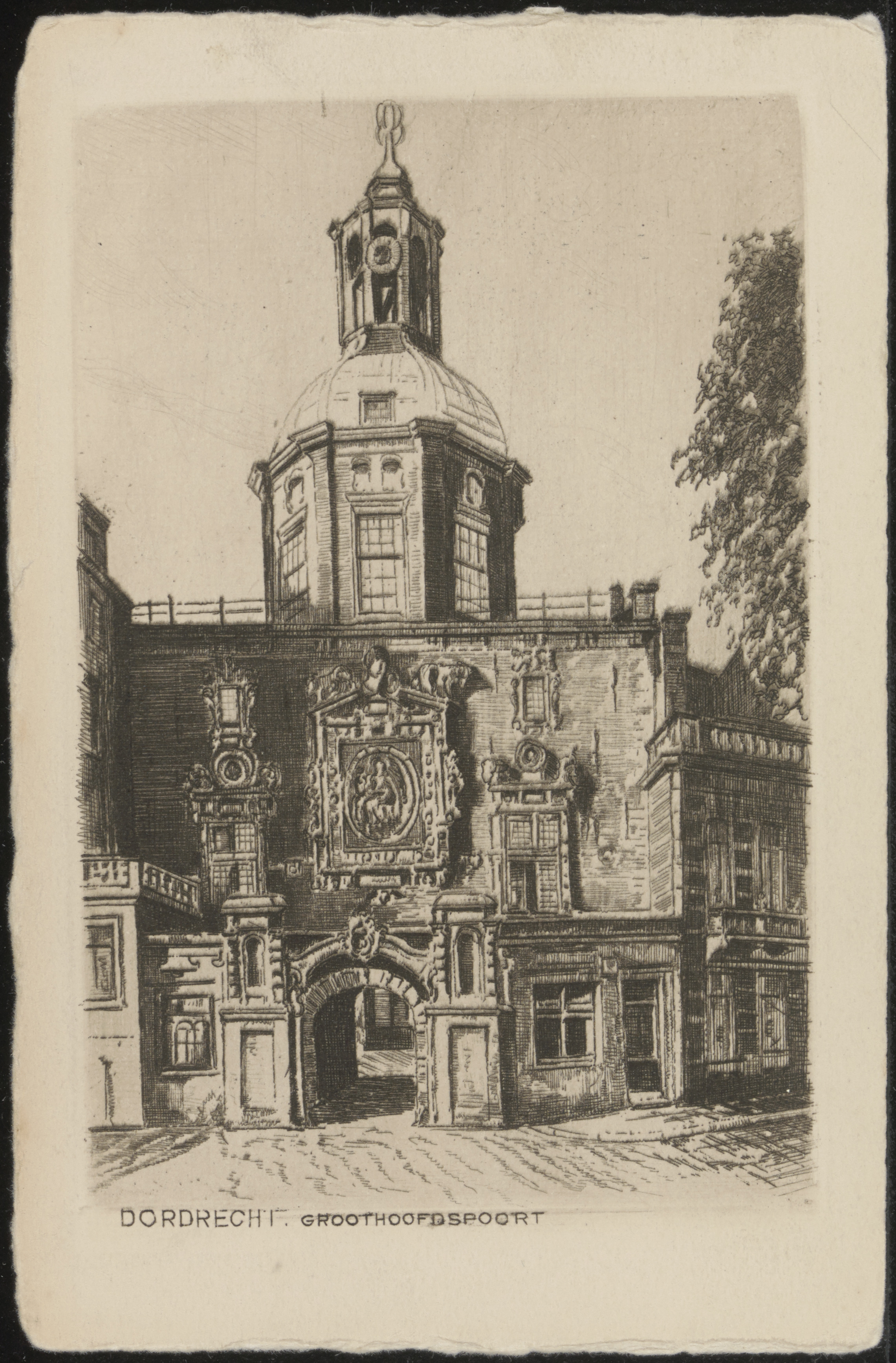 - Tekening van de Groothoofdspoort aan de zijde van het Groothoofd.