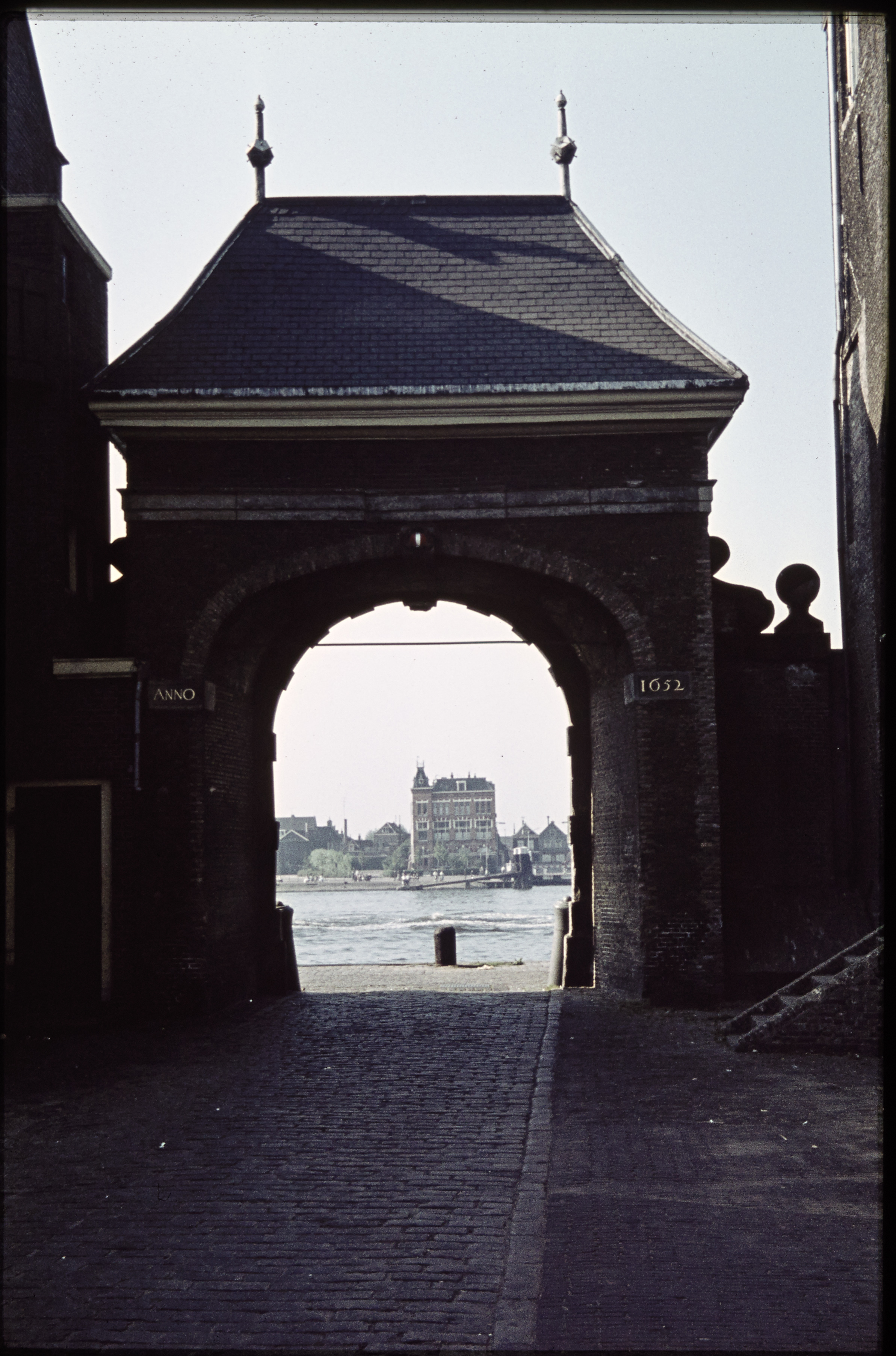 - Korte Engelenburgerkade en de Catrijnepoort met doorzicht op hotel Het Witte Paard aan het Veerplein in Zwijndrecht.