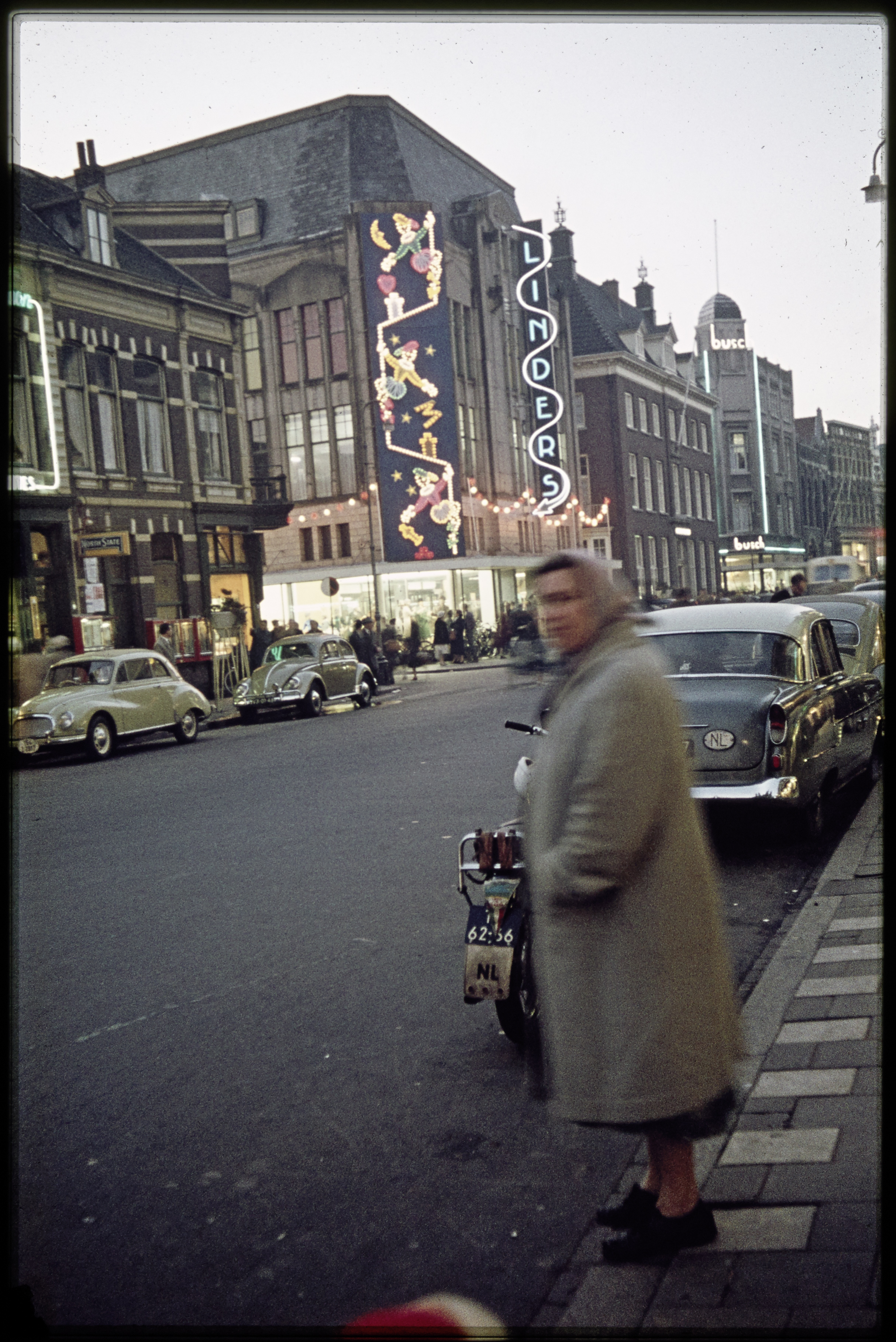 - Bagijnhof met warenhuis Linders op de hoek van de Raamstraat en Busch damesmode op de hoek van de Lange Breestraat.